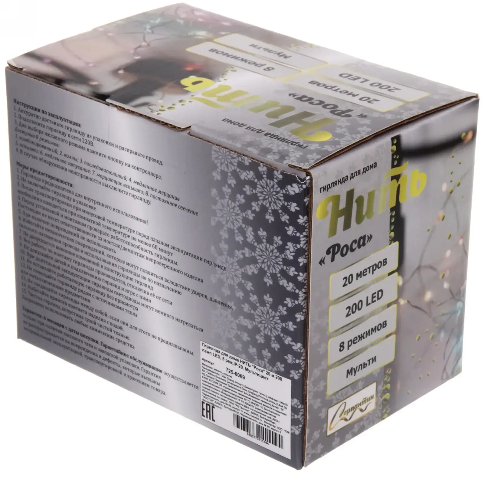 - Длина 20 метров – хватит для украшения большой ёлки или комнаты