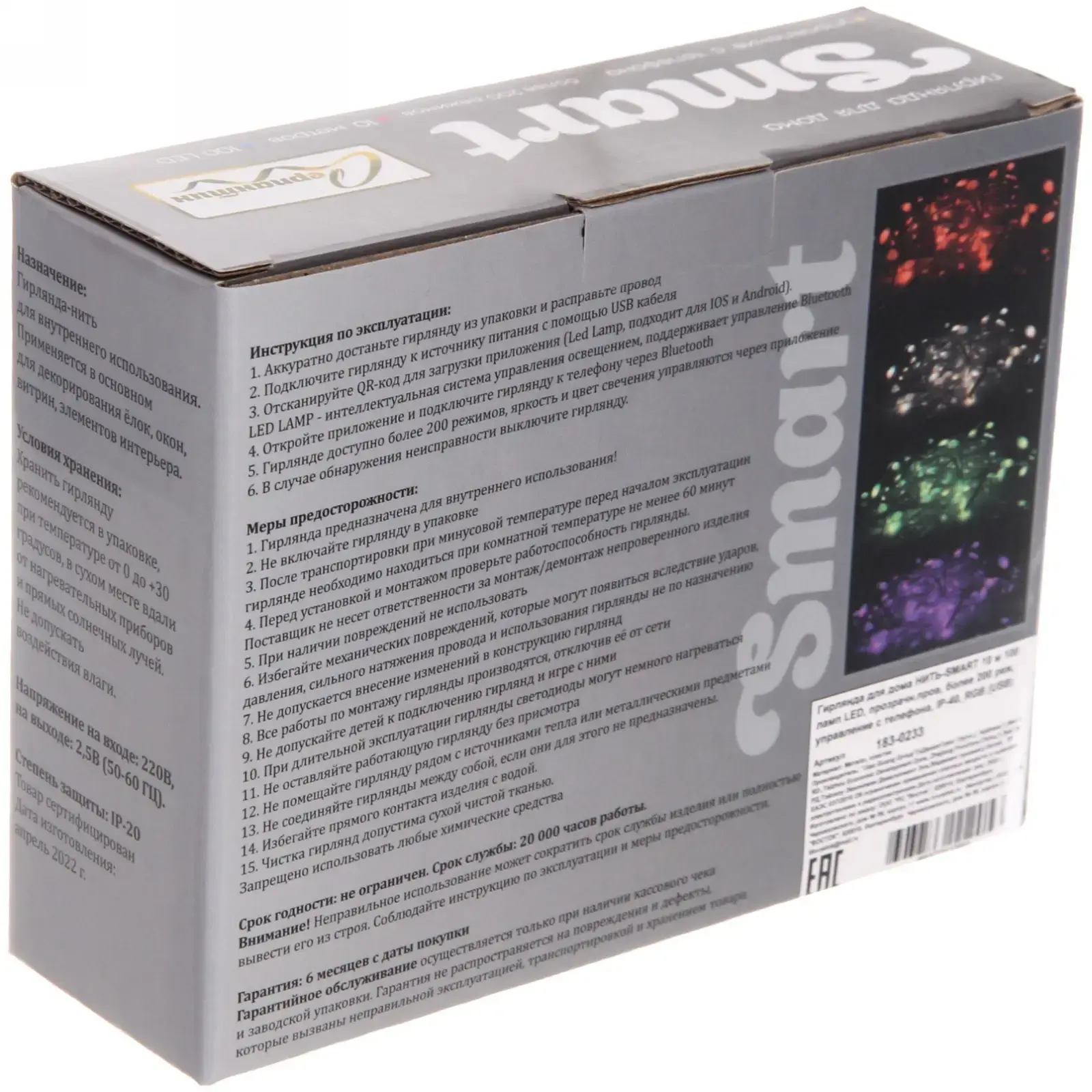 Гирлянда оснащена более чем 200 режимами работы, что позволяет вам выбрать именно тот вариант, который подходит для вашего настроения или события. Управление осуществляется через специальное приложение на смартфоне, что делает использование гирлянды простым и удобным. Вы можете выбрать один из множества цветов, включая красный, зеленый, синий и другие, а также регулировать яркость освещения.
