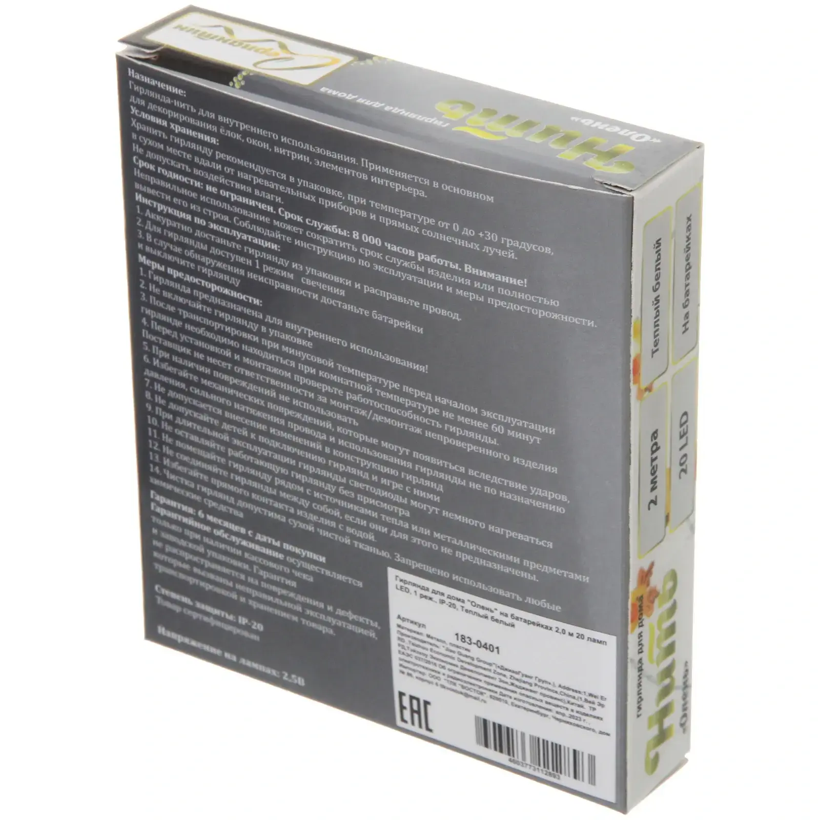 Выбирая гирлянду «Олень», вы получаете не только красивое украшение, но и практичное решение для освещения. Светодиоды обеспечивают долгий срок службы, а использование батареек делает гирлянду мобильной и удобной в использовании. Вы можете легко менять её местоположение, не беспокоясь о проводах и розетках.