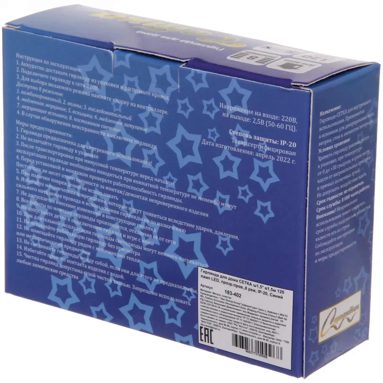 Выбирая эту гирлянду, вы получаете не только красивое освещение, но и множество режимов работы — целых 8 различных режимов, которые позволят вам настроить освещение под любое настроение. Кроме того, гирлянда защищена по стандарту IP-20, что делает её безопасной для использования в помещениях. Она выполнена из качественных материалов, что гарантирует долговечность и надежность в эксплуатации.