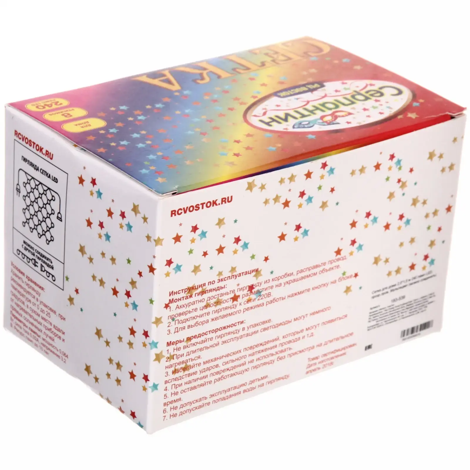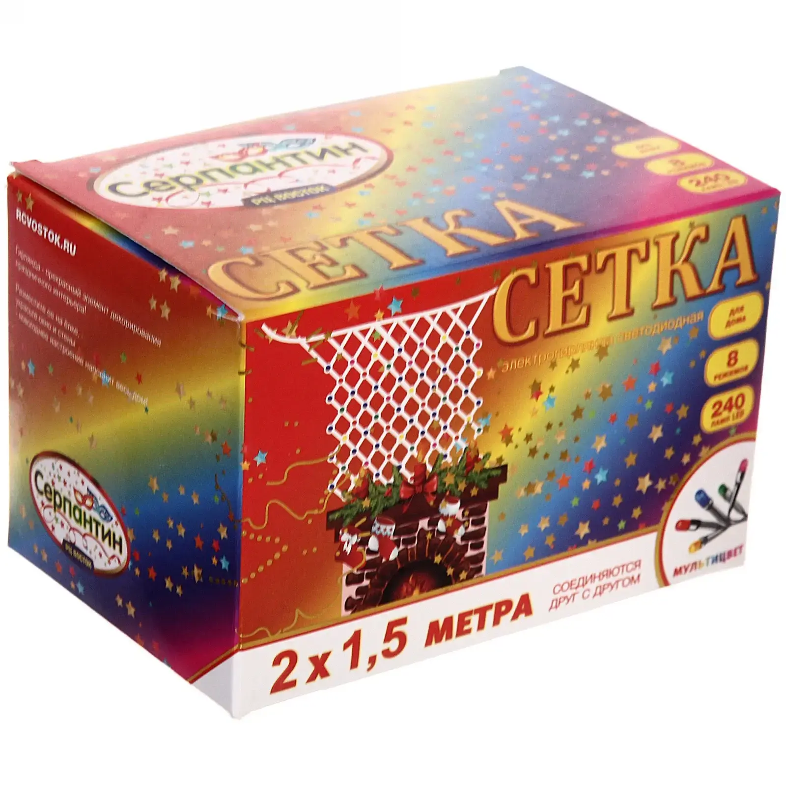 Эта гирлянда-сетка с 240 яркими LED-лампами станет идеальным решением для украшения вашего дома или сада. С её помощью вы сможете легко создать волшебное освещение для любого праздника, будь то Новый год, день рождения или романтический вечер. Гирлянда имеет размеры 2 метра на 1,5 метра, что позволяет украсить большие площади, такие как стены, окна или деревья.