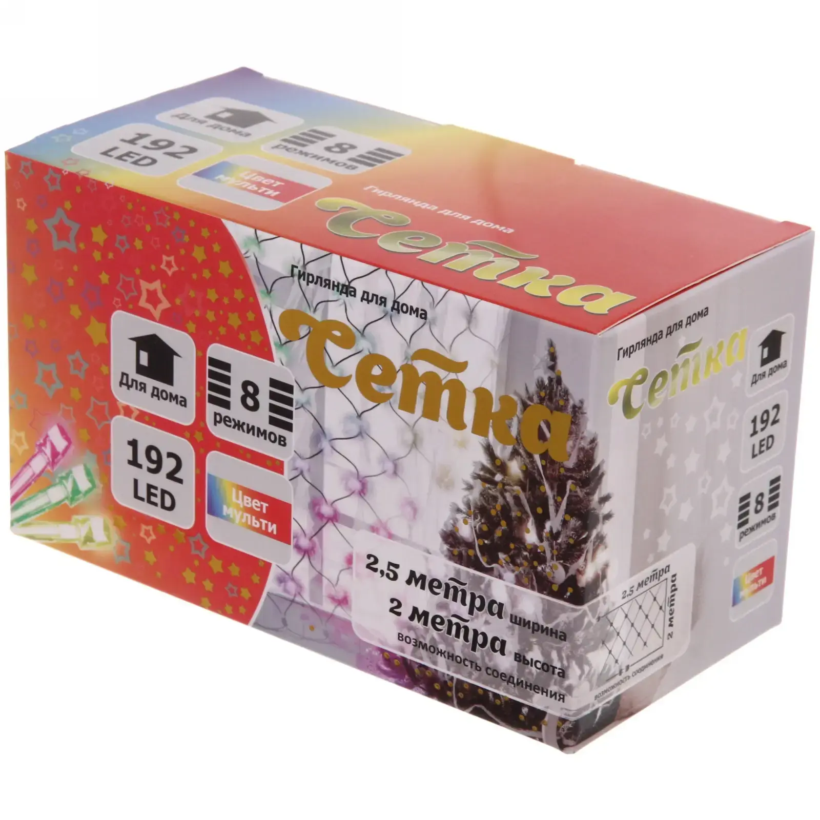 Гирлянда имеет размеры 2,5 метра в ширину и 2 метра в высоту, что позволяет легко украсить окна, двери, кусты и деревья. Она выполнена из прочных материалов, что обеспечивает долговечность и надежность в использовании. Простота установки и возможность соединения с другими гирляндами делают ее универсальным решением для любого праздника.