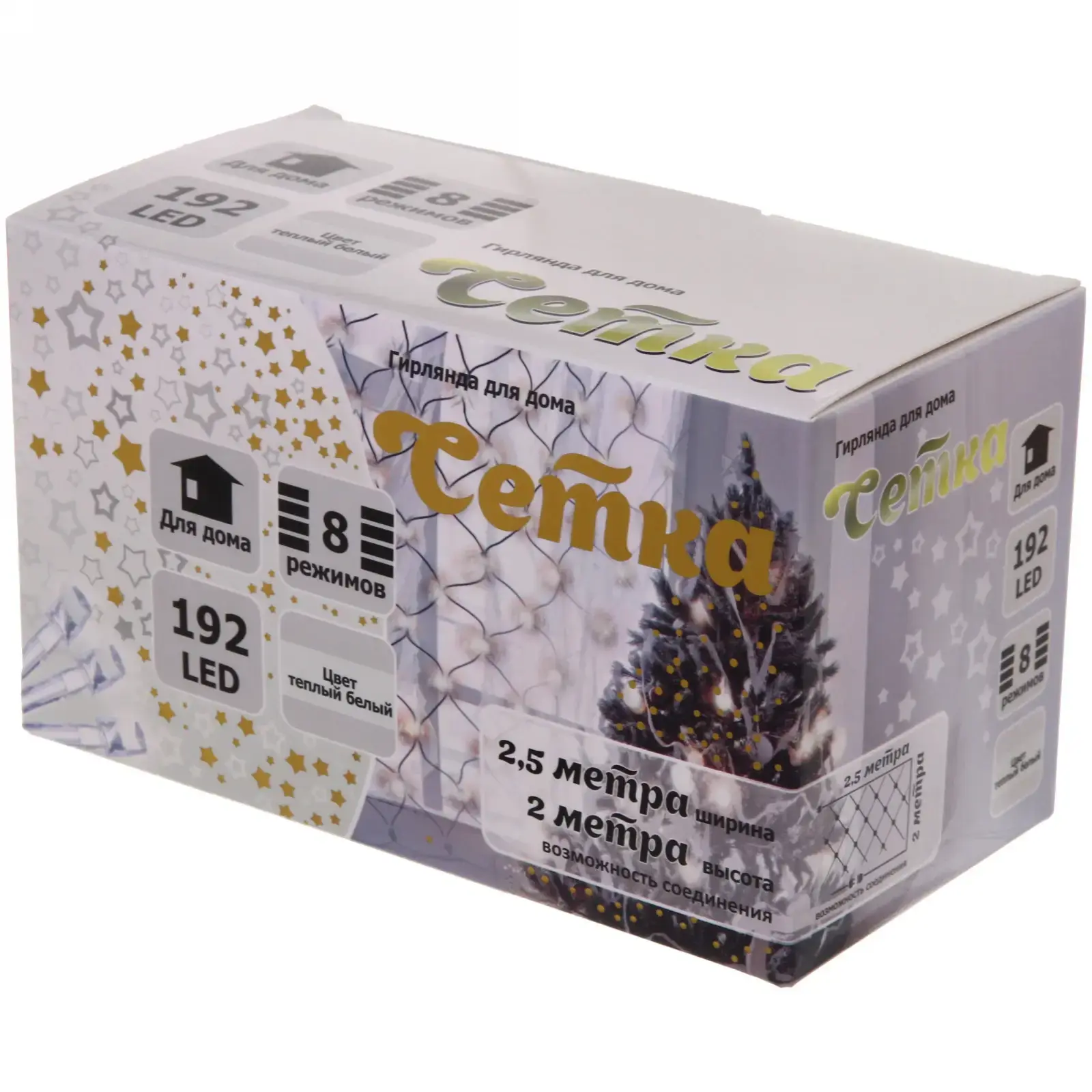 Гирлянда 'Сетка' создана для тех, кто ценит уют и праздничную атмосферу. Благодаря уникальной структуре из 192 светодиодов, она равномерно распределяет мягкое теплое свечение, превращая любую поверхность в декоративный шедевр.