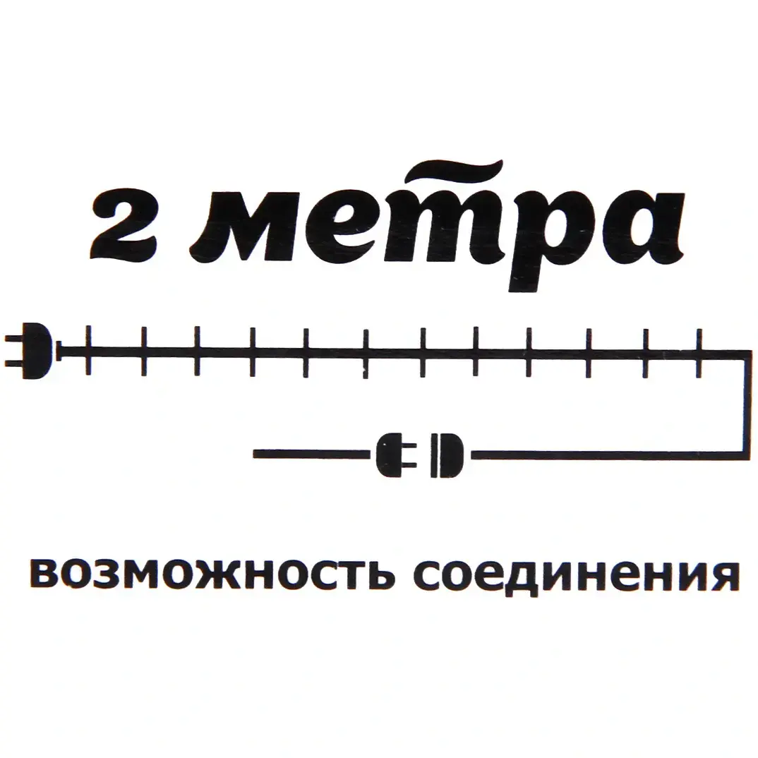 Гирлянда длиной 2 метра состоит из 10 светодиодов, которые равномерно освещают пространство. Она идеально подходит для украшения интерьера, а также может быть использована на улице, если вы хотите создать праздничное настроение на вашем балконе или в саду. Благодаря возможности соединения нескольких гирлянд, вы можете легко увеличить длину освещения и создать уникальные композиции.