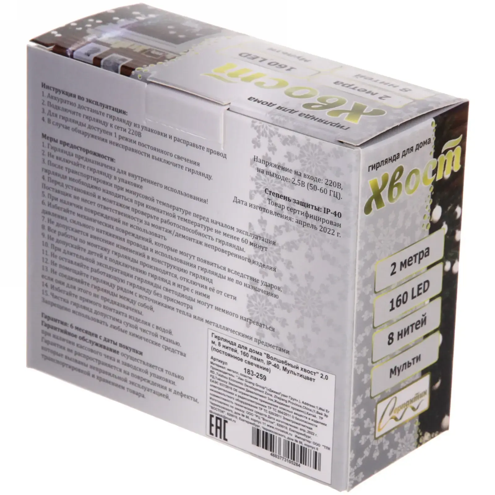 Гирлянда светодиодная «Волшебный хвост» длиной 2 метра с 160 лампами — это идеальное решение для создания уютного и праздничного настроения в вашем доме. Мультицветное свечение добавит ярких красок в любое пространство, будь то интерьер, фасад здания или новогодняя елка. Эта гирлянда станет не только украшением, но и источником вдохновения для ваших творческих идей.