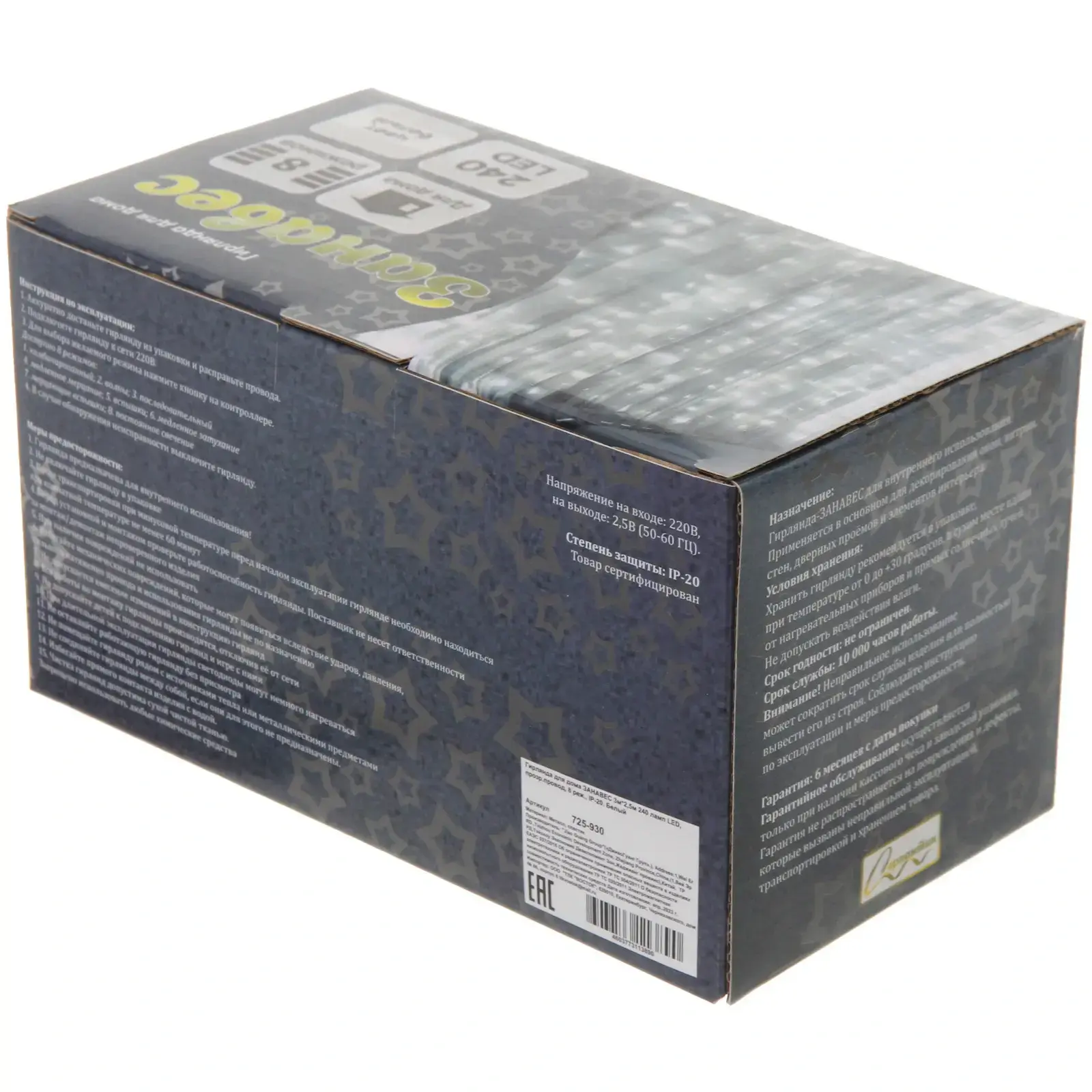 Гирлянда для дома 'Занавес' — это идеальное решение для создания праздничной атмосферы в вашем интерьере. С длиной 3 метра и высотой 2,5 метра, она легко украсит любое пространство, добавляя нотки волшебства и уюта. Белый светодиодный поток создает мягкое освещение, которое подходит как для праздников, так и для повседневного использования.