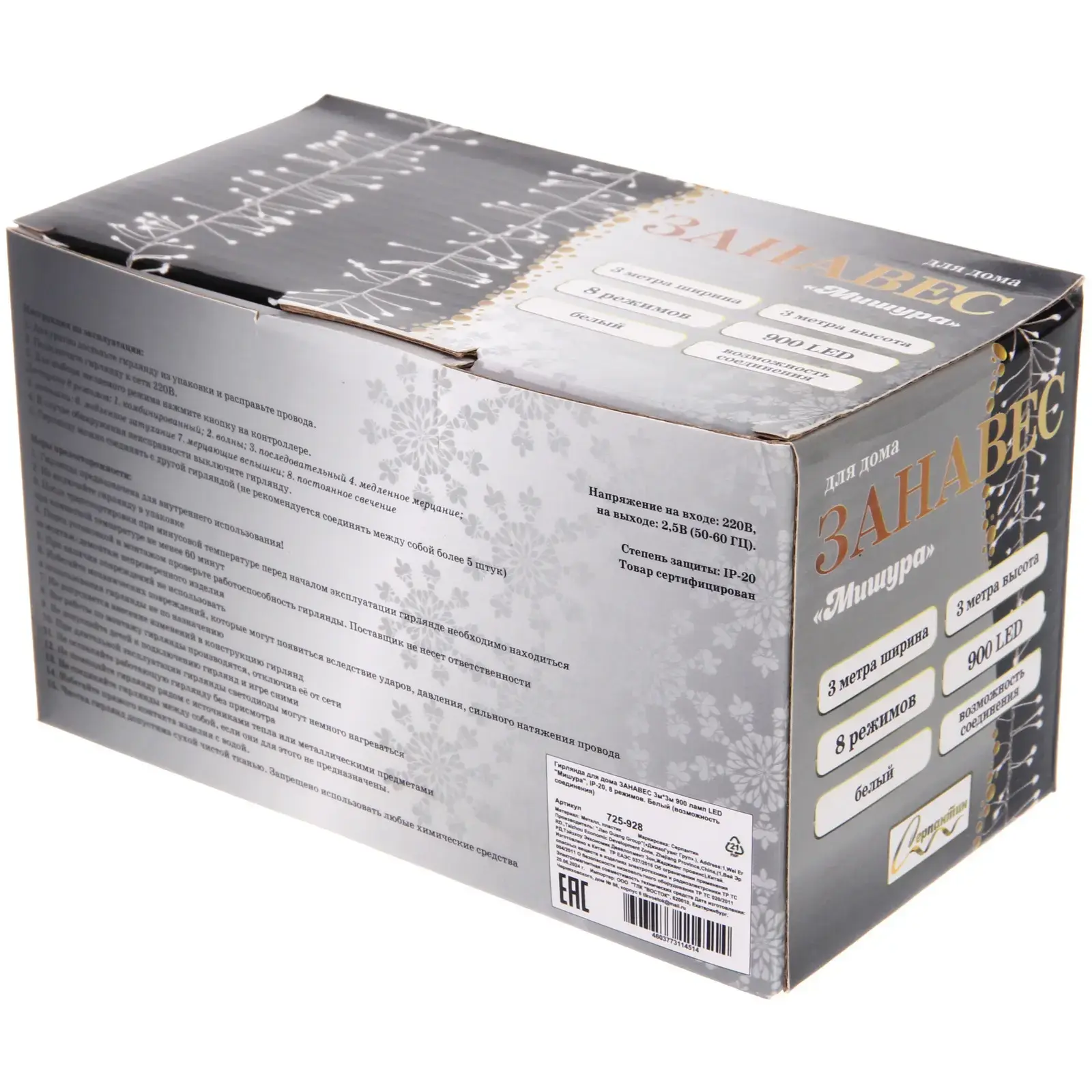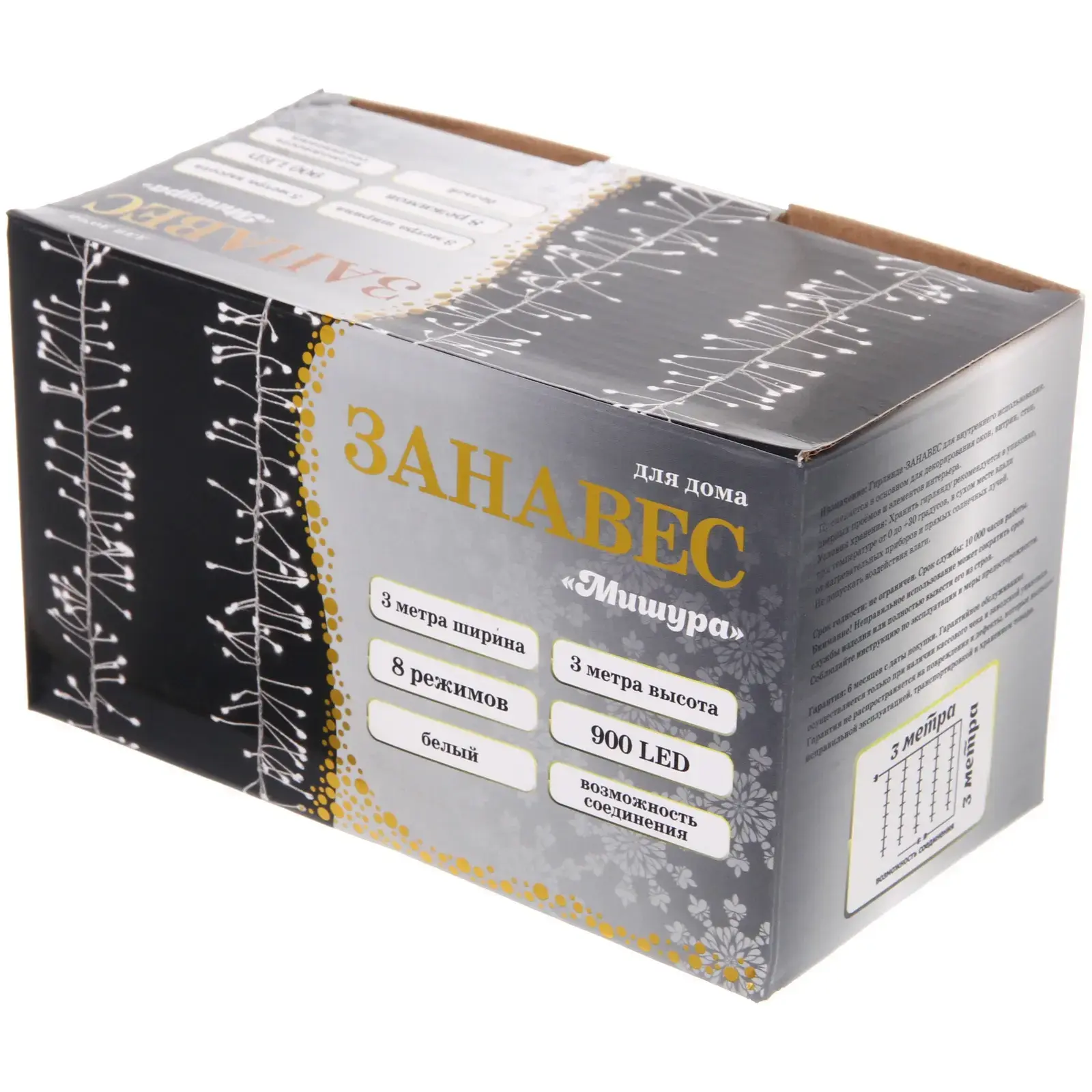 Гирлянда для дома ЗАНАВЕС 3м*3м 900 ламп LED «Мишура», IP-20, 8 режимов. Белый (возможность соединения)