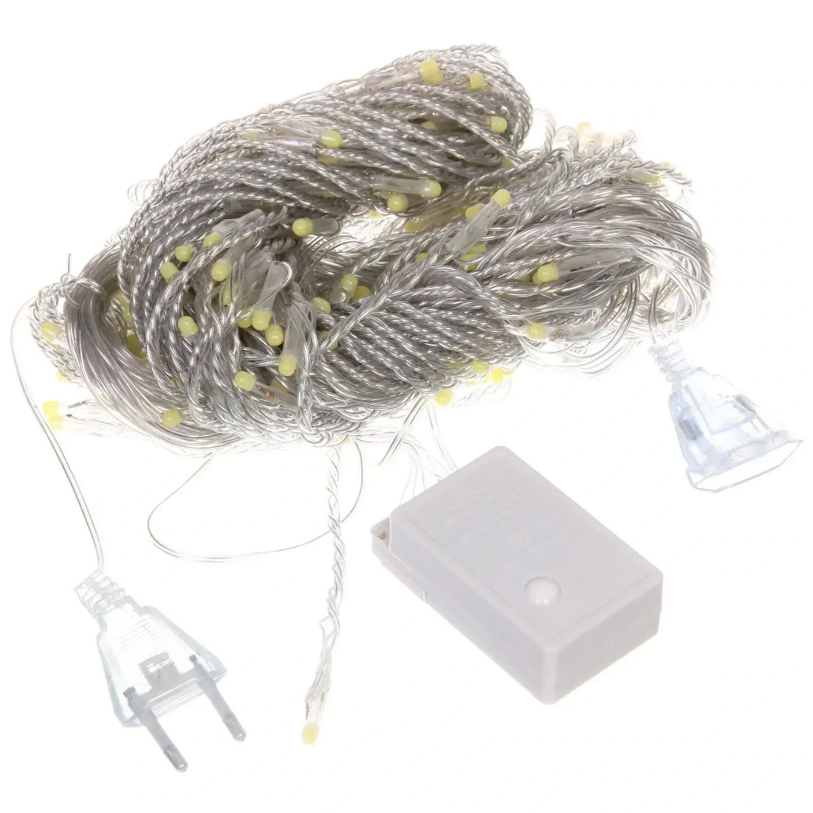 Гирлянда выполнена из качественных материалов: металл и пластик, что обеспечивает надежность и долговечность. Она имеет степень защиты IP-20, что делает ее безопасной для использования в помещениях. Размеры гирлянды: ширина 3 метра, высота 3 метра. Белый цвет светодиодов создает чистый и стильный вид, который легко впишется в любой интерьер.