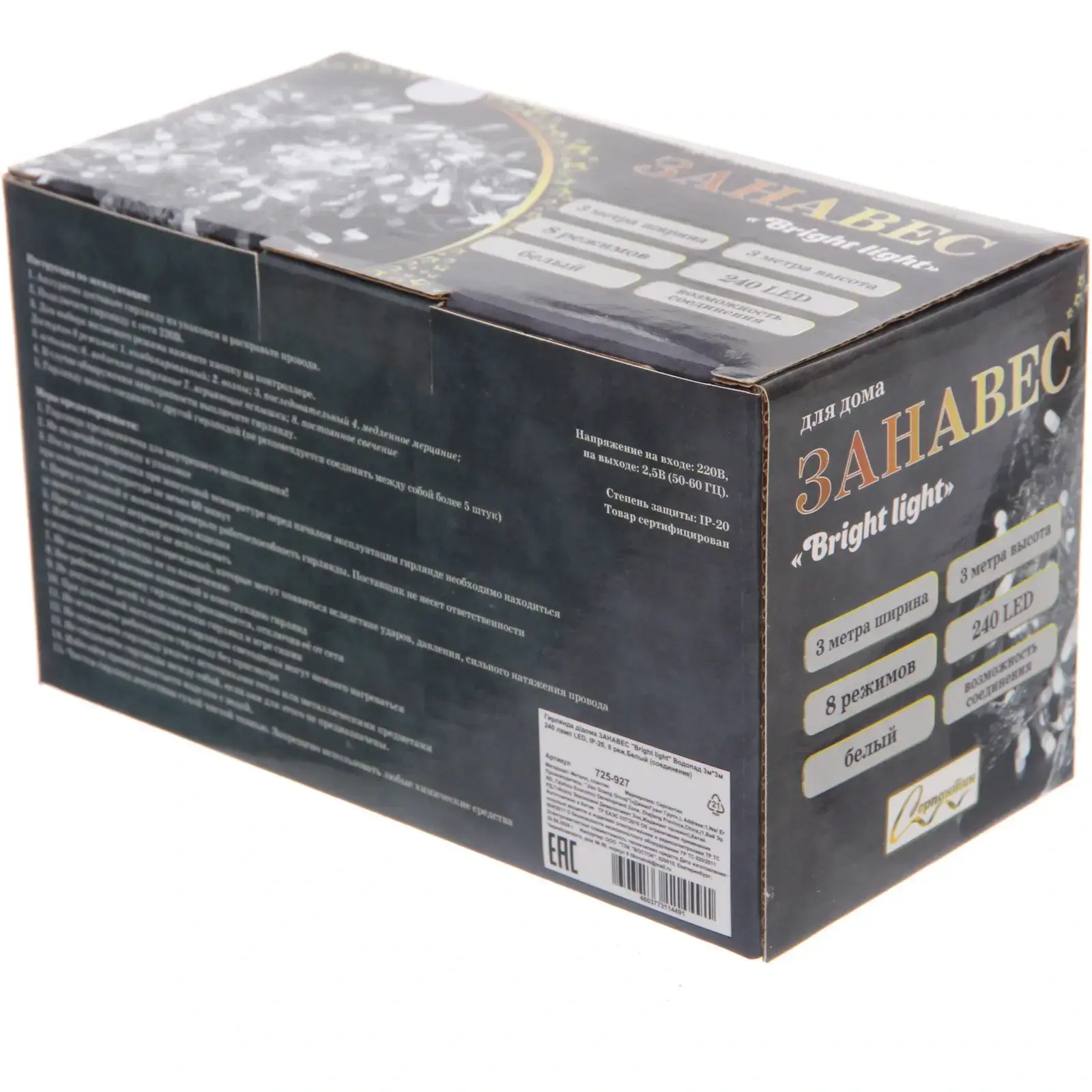 Создайте атмосферу праздника и уюта с гирляндой «Bright Light». Эта стильная гирлянда длиной 3 метра и высотой 3 метра станет идеальным украшением для любого интерьера. С 240 яркими светодиодами и 8 режимами работы, она добавит волшебства в ваш дом, создавая неповторимую атмосферу.