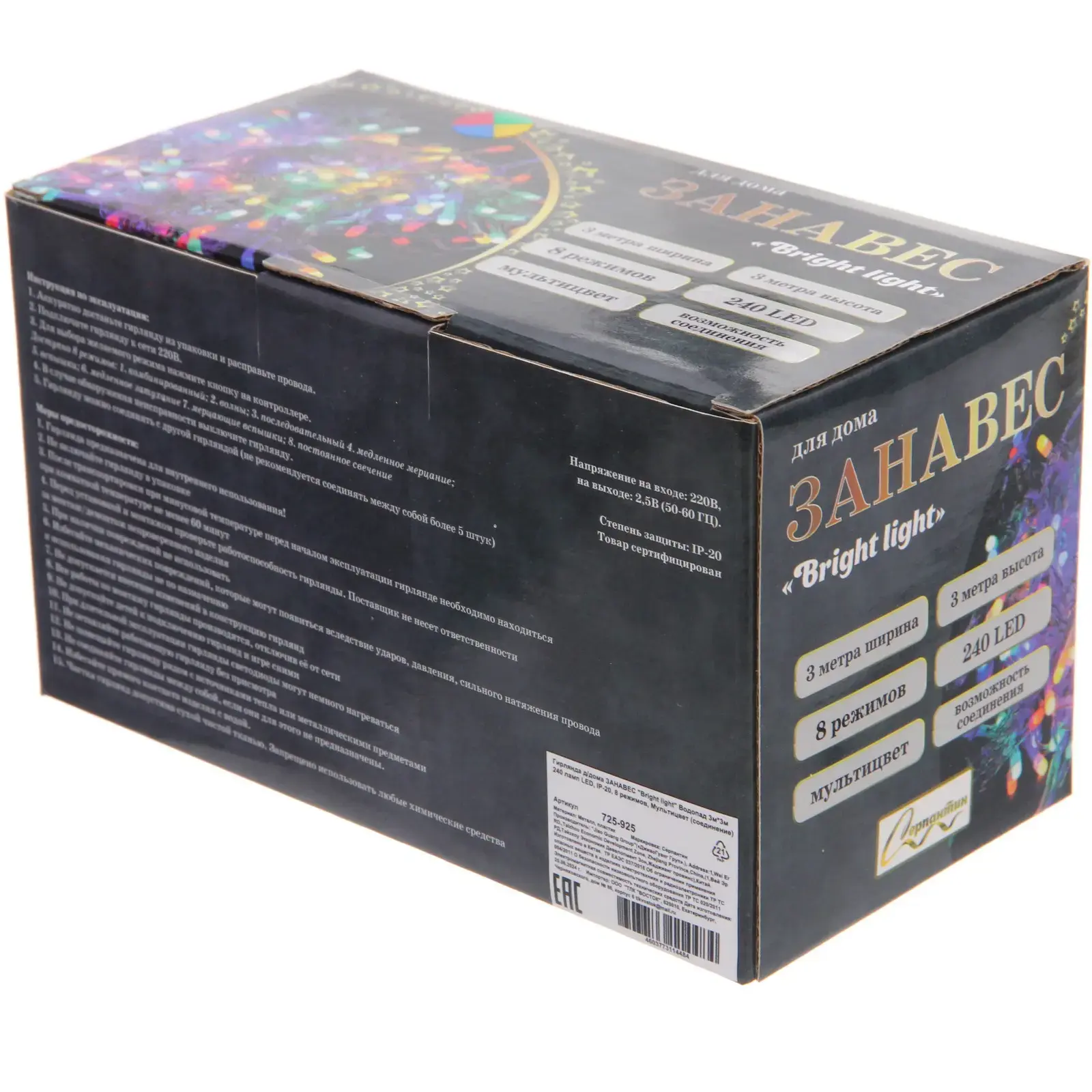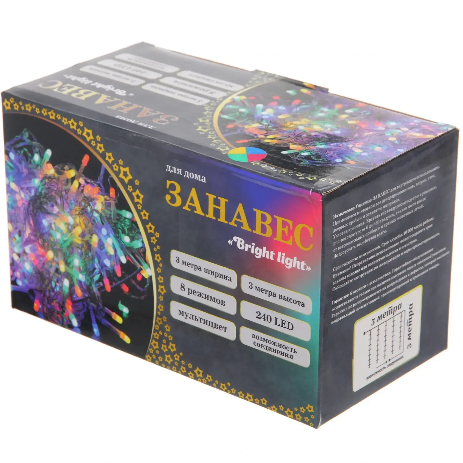 Гирлянда для дома ЗАНАВЕС «Bright light» Водопад 3м*3м 240 LED, IP-20, 8 режимов, Мультицвет (возм. соединения)