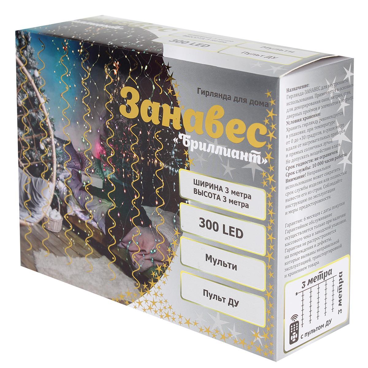 Гирлянда занавес "Бриллиант" 3х3м, 300 LED-ламп, мультицвет, с пультом