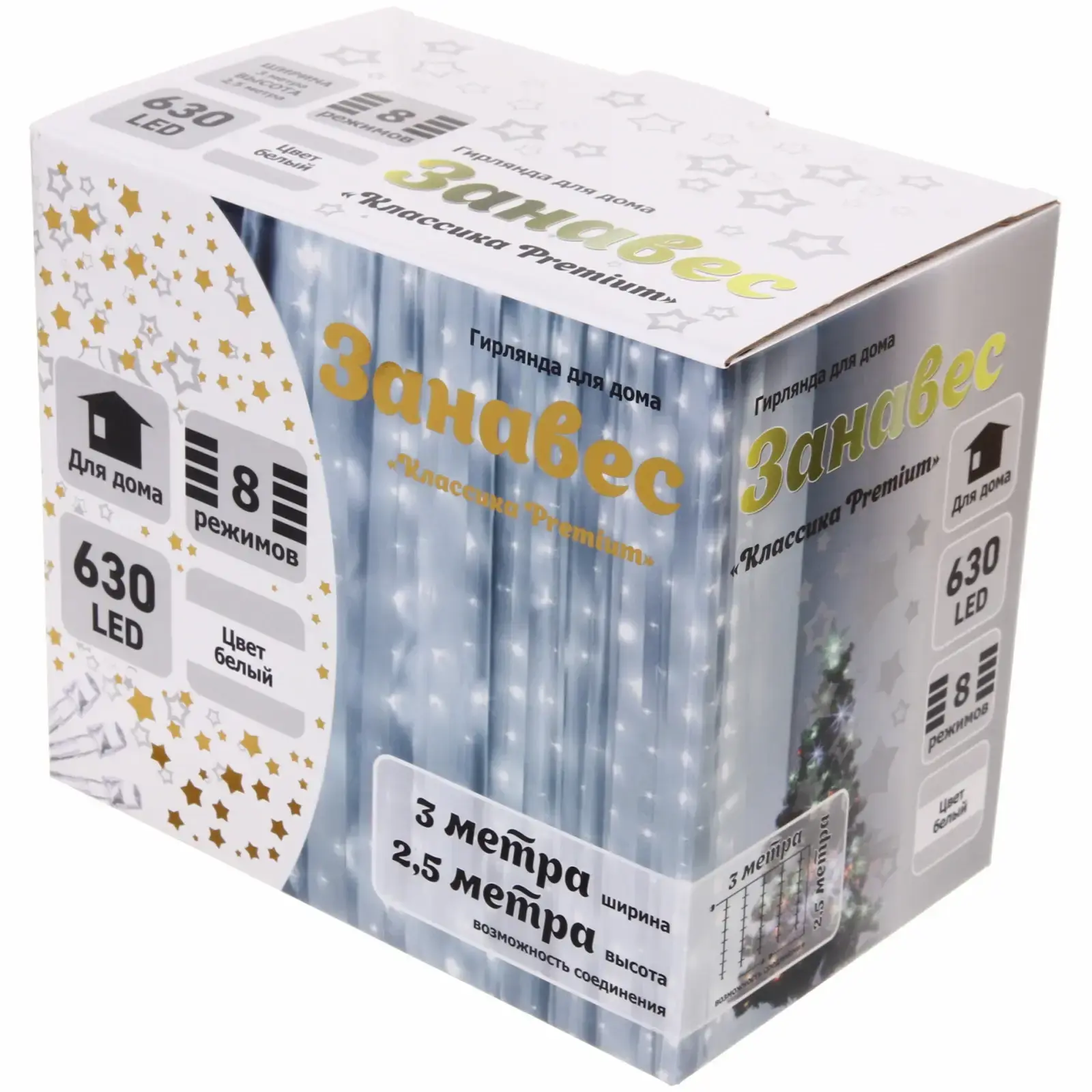 Гирлянда занавес «Классика Premium» — это идеальное решение для создания волшебной атмосферы в вашем доме. С её помощью вы сможете легко преобразить любое пространство, добавив нотки уюта и тепла. Благодаря 630 светодиодам, гирлянда излучает мягкий белый свет, который создаёт эффект звездного неба и наполняет комнату атмосферой праздника.