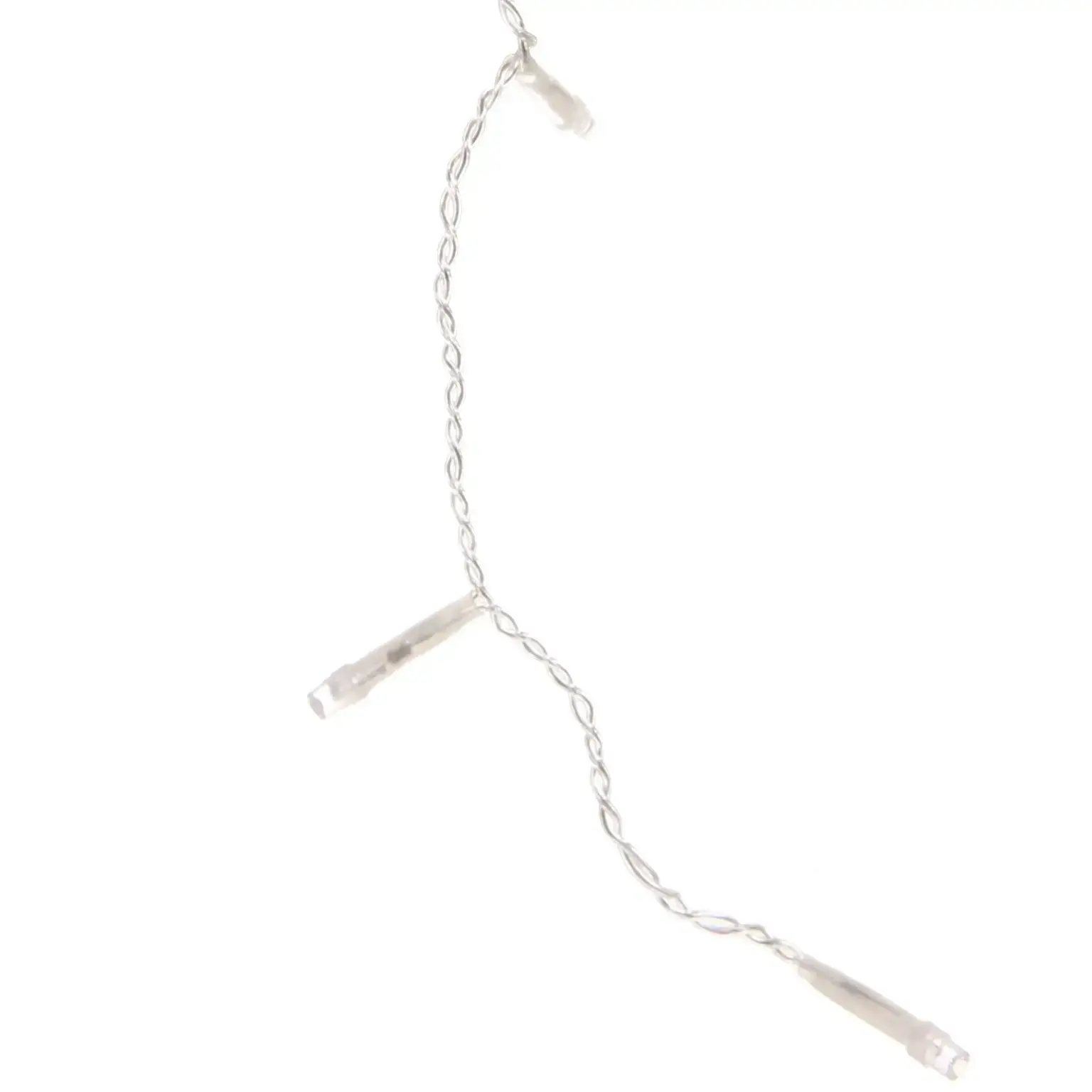 Размеры гирлянды составляют 3 метра в ширину и 2,5 метра в высоту, что позволяет использовать её в различных интерьерах. Цвет лампочек — белый, что делает свет мягким и приятным для глаз. Гирлянда выполнена из качественных материалов, что обеспечивает её долговечность и надежность в эксплуатации.