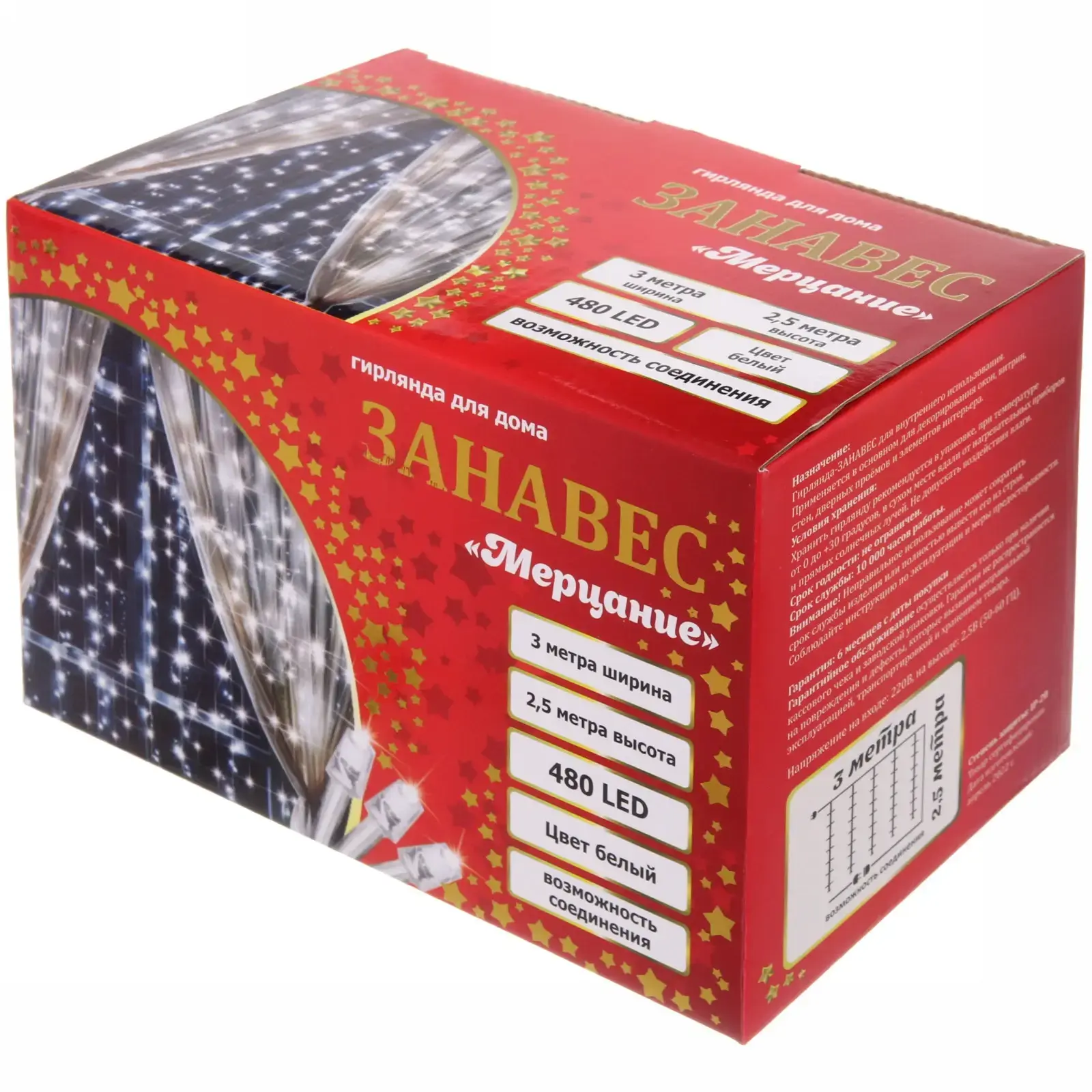 Гирлянда занавес «Мерцание» — это идеальное решение для создания праздничного настроения в вашем доме. С её помощью вы сможете легко преобразить любое помещение, добавив в него нотки волшебства и уюта. Благодаря 480 светодиодам, которые мерцают и сверкают, гирлянда создает эффект звездного неба, наполняя пространство мягким и приятным светом.
