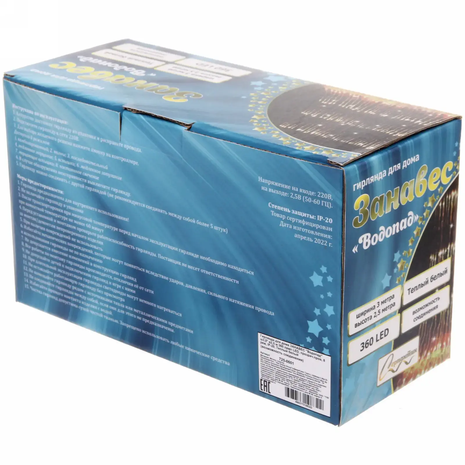 Гирлянда выполнена из качественных материалов, что обеспечивает ее долговечность и надежность. Степень защиты IP-20 гарантирует, что гирлянда защищена от твердых предметов, но не от влаги, поэтому рекомендуется использовать ее в помещениях или под навесами. Упаковка содержит всю необходимую информацию о характеристиках и способах подключения, что делает установку простой и понятной.