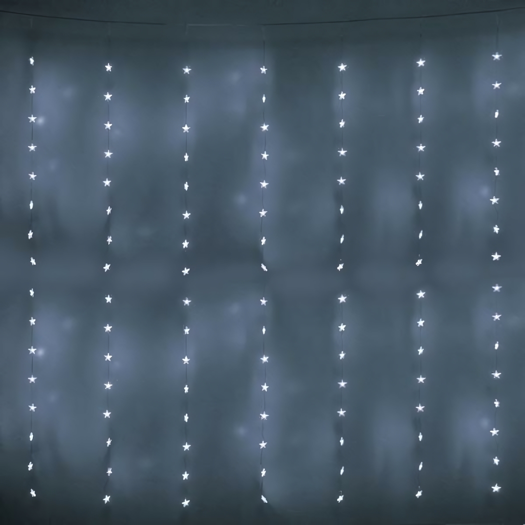 Эта светодиодная гирлянда-занавес со звездами наполнит ваш дом атмосферой тепла и сказочности. Белый свет LED-ламп создаёт мягкое, равномерное сияние, которое прекрасно подходит для создания праздничного настроения не только в Новый год, но и в любое время года.