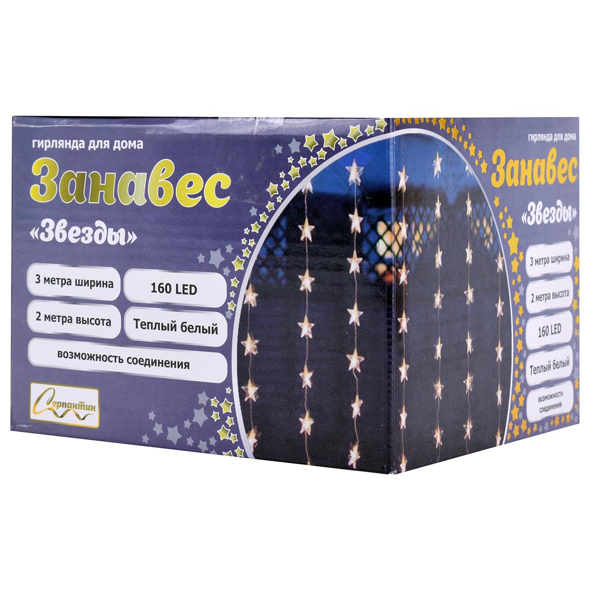 Создайте волшебную атмосферу праздника и уюта с гирляндой «Занавес “Звезды”» — идеальным решением для оформления любой комнаты, балкона или праздничного стола. Тёплый белый свет в 160 LED‑ламп делает пространство мягким и приветливым уже с первого включения.