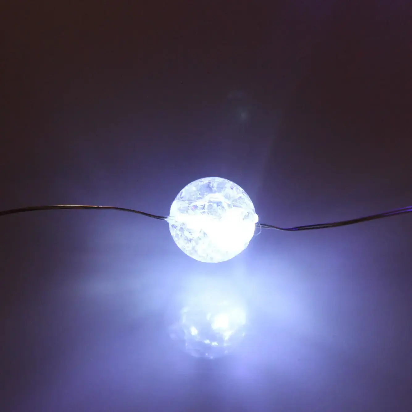 Гирлянда состоит из 20 прозрачных шариков диаметром 1 см, выполненных из качественного пластика. Каждый шарик имеет рифлёную текстуру, что создает эффект переливания света. Гирлянда защищена от влаги (IP-20), что позволяет использовать её в помещениях. Не забудьте, что батарейки не входят в комплект, поэтому позаботьтесь о них заранее.