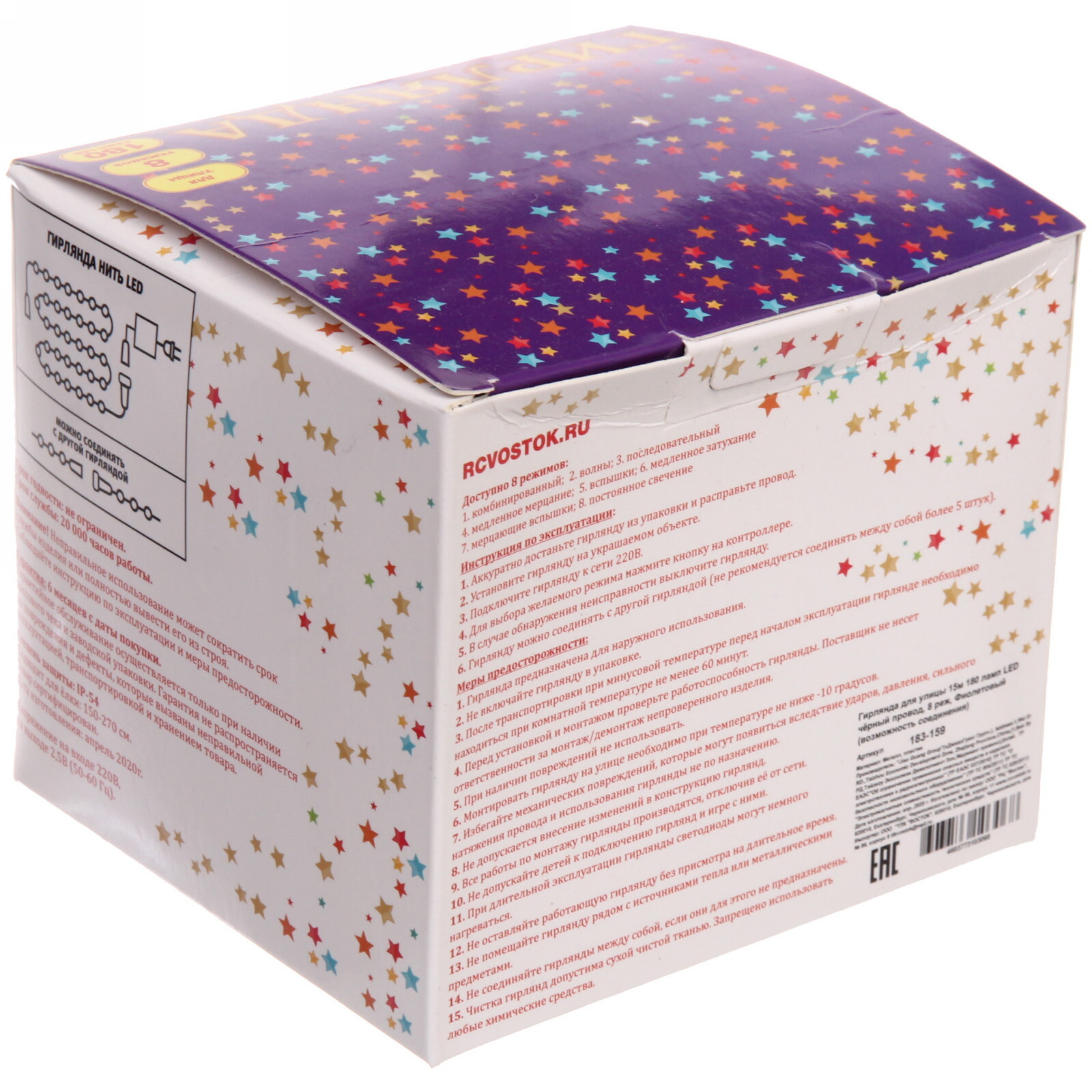 Эта гирлянда длиной 15 метров с 180 яркими фиолетовыми лампами LED станет идеальным решением для украшения вашего двора или террасы. Благодаря 8 режимам работы, вы сможете легко менять атмосферу в зависимости от настроения и события. Гирлянда защищена по стандарту IP-54, что гарантирует её надежность и долговечность даже в условиях дождя и снега.