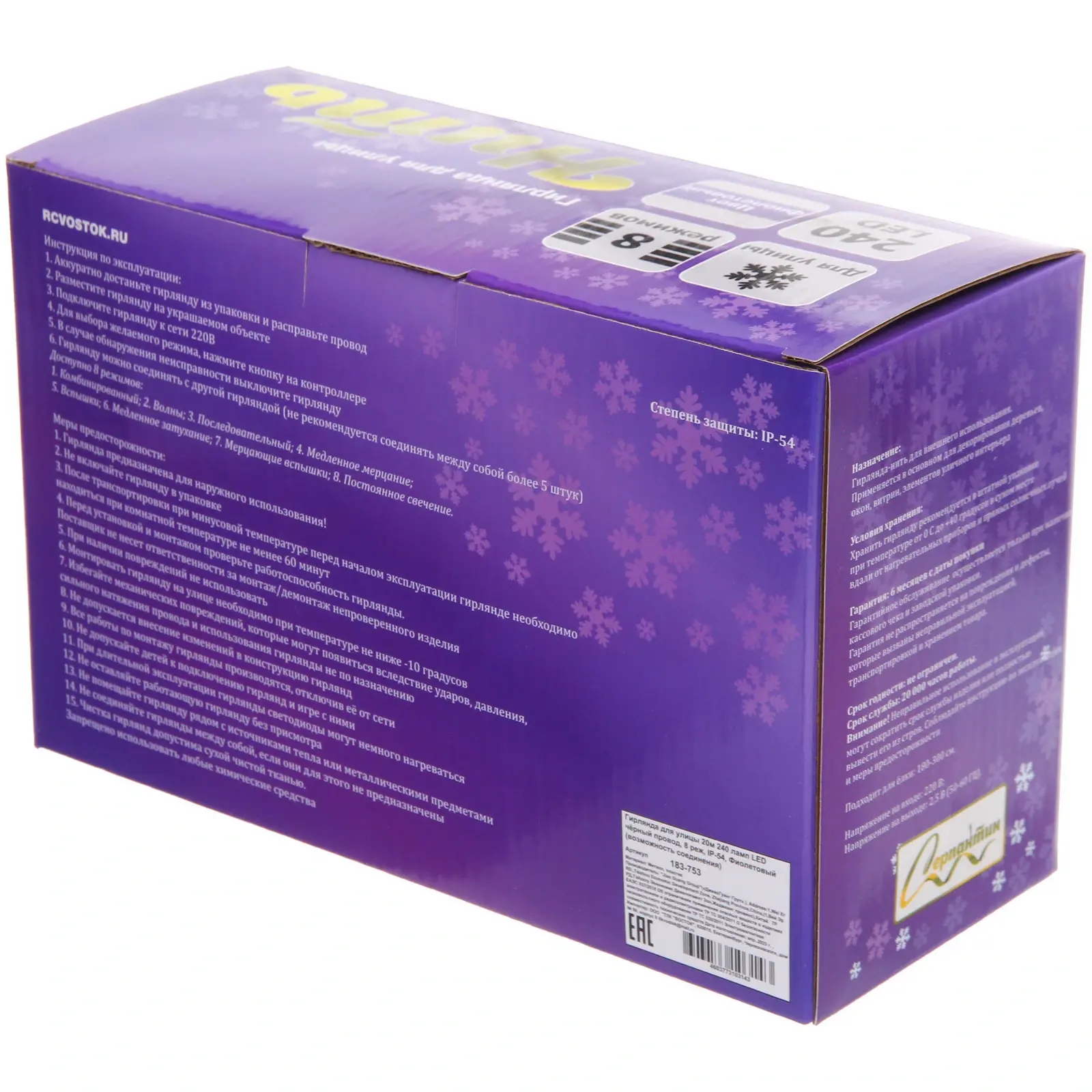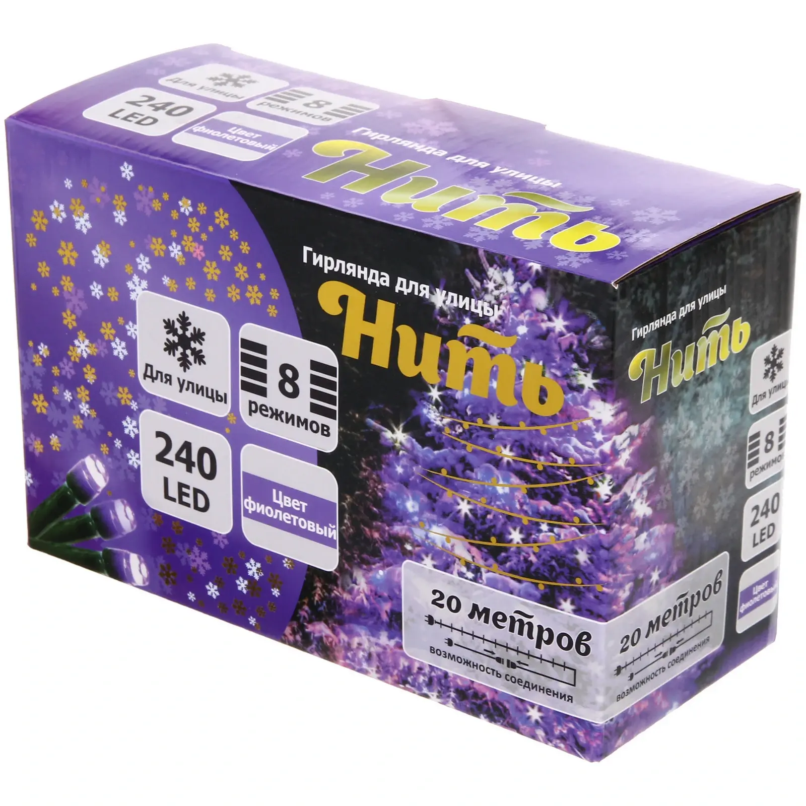 Гирлянда для улицы 20м 240 ламп LED чёрный провод, 8 реж, IP-54, Фиолетовый (возможность соединения)
