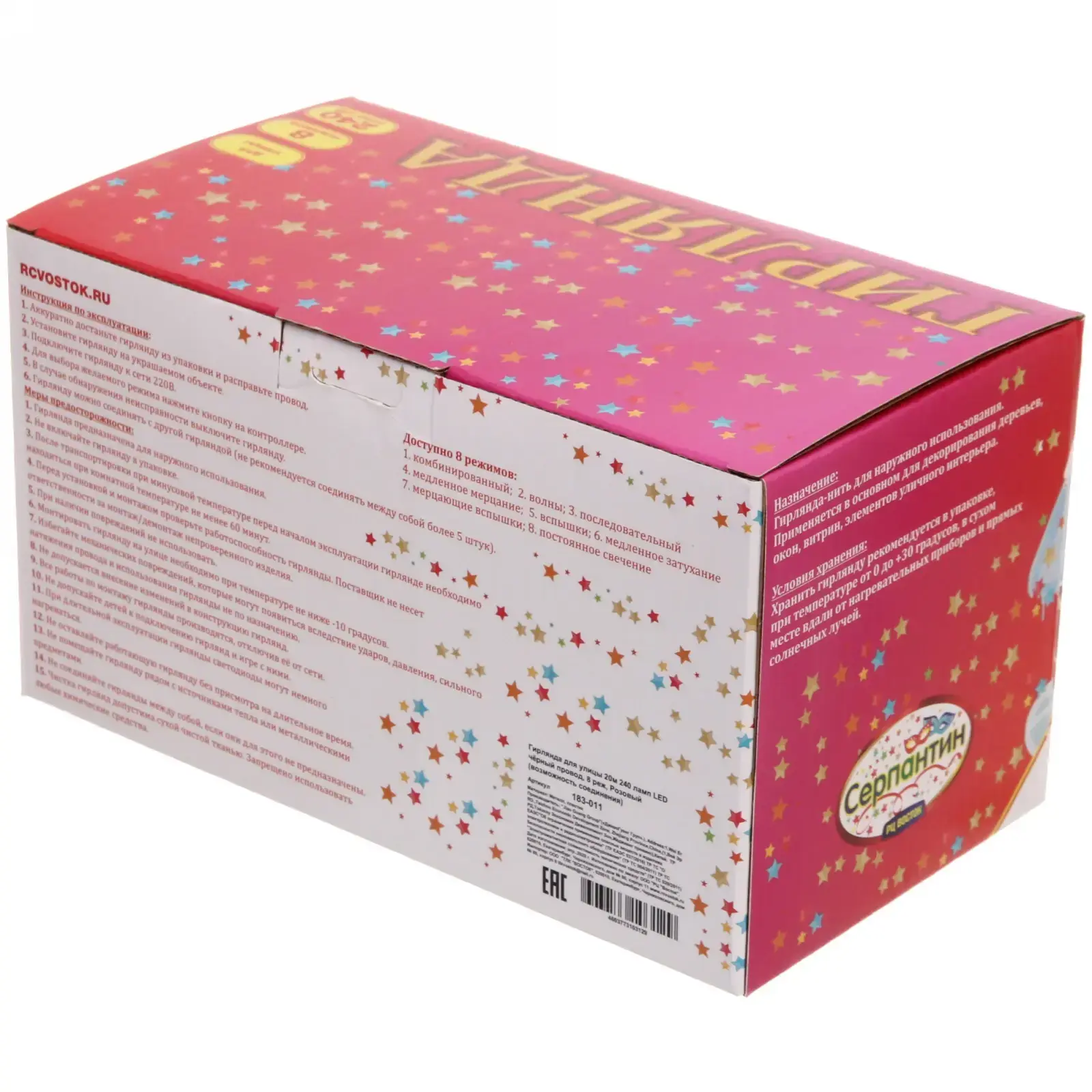 Гирлянда для улицы 20м 240 ламп LED чёрный провод, 8 реж, IP-54, Розовый (возможность соединения)