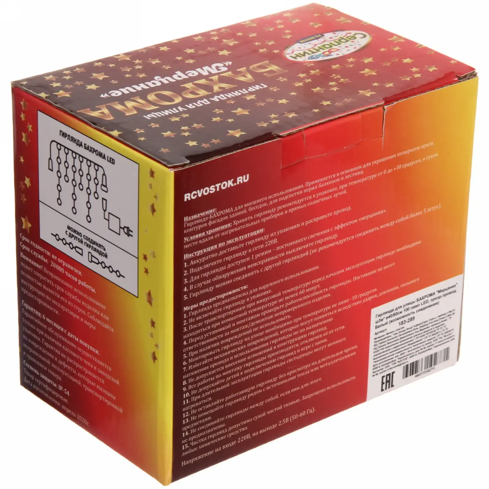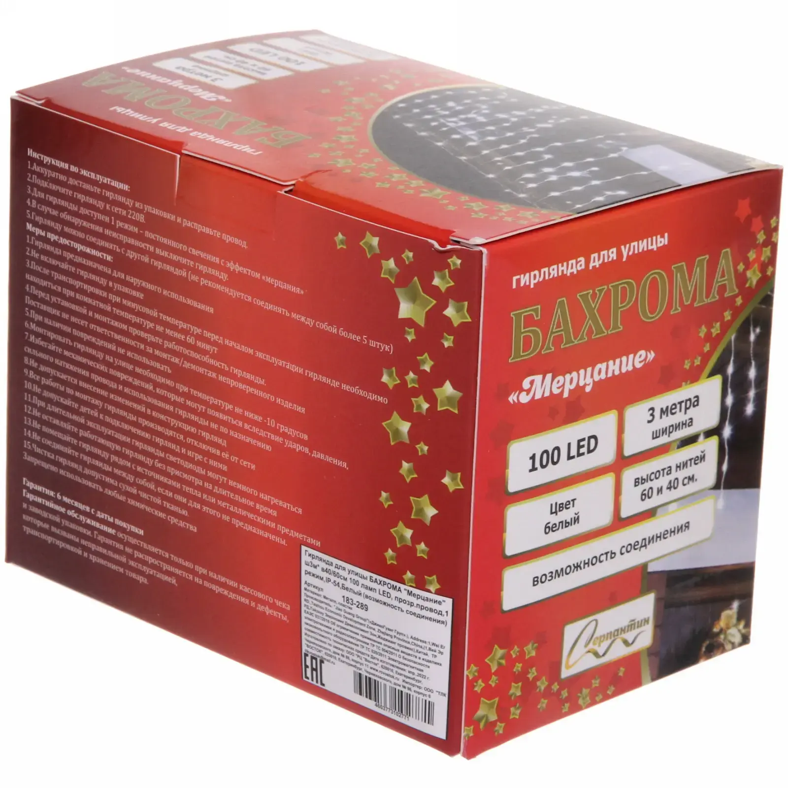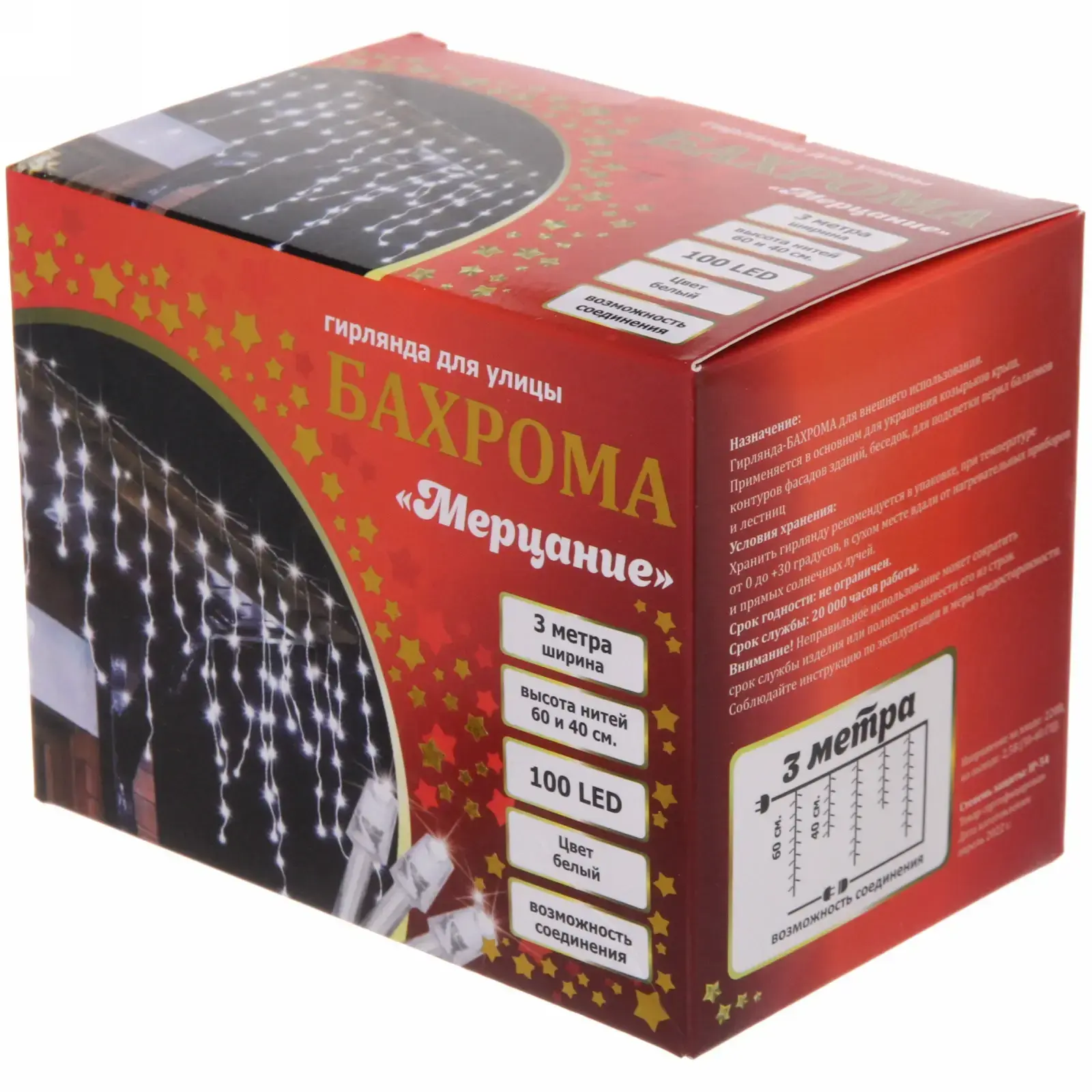 Гирлянда для улицы 'Бахрома' — это идеальное решение для создания праздничного настроения и уютной атмосферы в вашем доме или на улице. С длиной 3 метра и 100 светодиодами, она обеспечивает яркое и эффектное освещение, которое будет радовать вас и ваших близких. Белый цвет лампочек создает ощущение звездного неба, а эффект мерцания добавляет волшебства в любое событие.