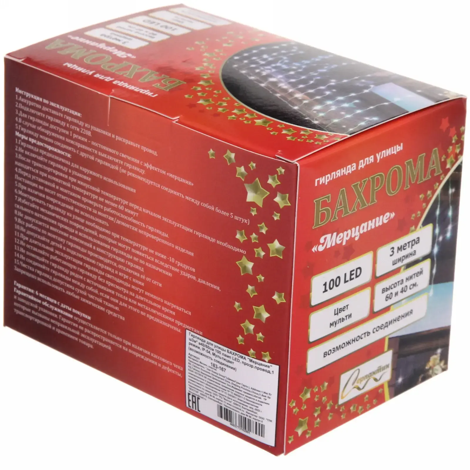 Гирлянда имеет размеры 3 метра в длину и 40/60 см в высоту, что делает её универсальной для различных типов декора. Она выполнена из качественных материалов — металла и пластика, что обеспечивает долговечность и надежность. Возможность соединения с другими гирляндами позволяет вам создавать уникальные композиции и расширять световое оформление по вашему желанию.