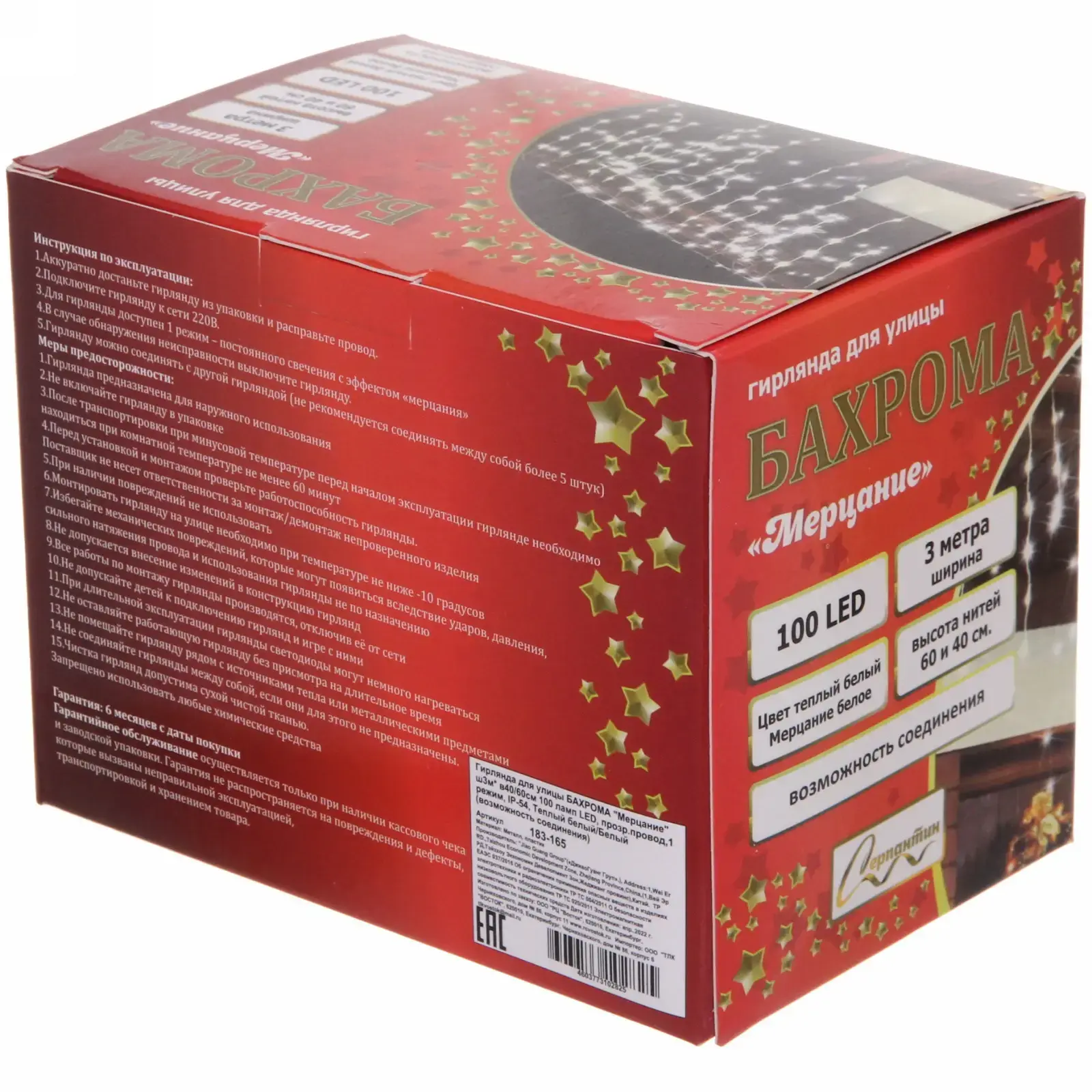 Гирлянда для улицы БАХРОМА «Мерцание» ш3м* в40/60см 100 ламп LED,1 режим, IP-54, Т. белый/Белый (возм. соединения)