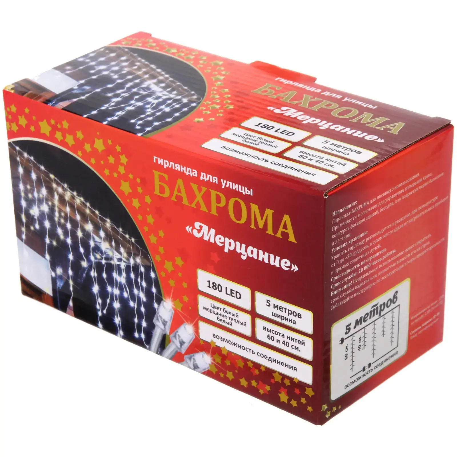 Гирлянда для улицы БАХРОМА «Мерцание» — это идеальное решение для создания праздничного настроения и уютной атмосферы в вашем доме или на улице. С длиной 5 метров и 180 светодиодами, она обеспечивает яркое и эффектное освещение, которое будет радовать вас и ваших близких. Благодаря возможности соединения нескольких гирлянд, вы можете легко расширить освещение в зависимости от ваших потребностей.