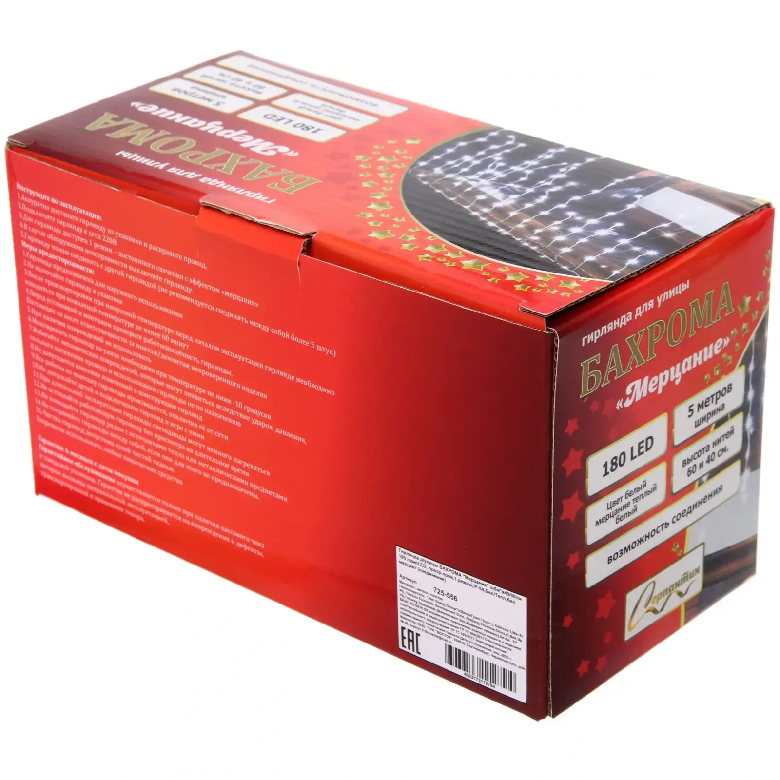 Гирлянда состоит из 180 LED-ламп, которые расположены на прозрачном проводе. Высота нитей составляет 40 и 60 см, что позволяет создать эффектный визуальный ряд. Гирлянда доступна в двух цветах: белом и теплом белом, что позволяет выбрать наиболее подходящий вариант для вашего интерьера или экстерьера. Не упустите возможность сделать ваш праздник незабываемым с гирляндой БАХРОМА «Мерцание»!