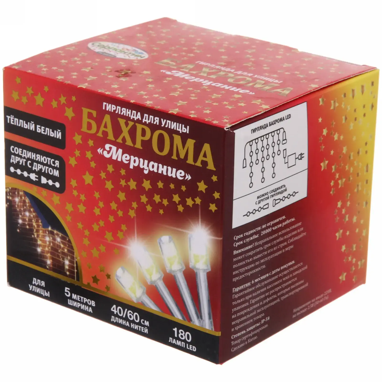 Гирлянда для улицы БАХРОМА «Мерцание» — это идеальное решение для создания праздничного настроения в вашем саду или на террасе. С длиной 5 метров и 180 светодиодами, она наполняет пространство теплым белым светом, создавая эффект мерцания, который напоминает звезды на ночном небе. Эта гирлянда не только украсит ваш дом, но и станет центром притяжения на любом празднике.