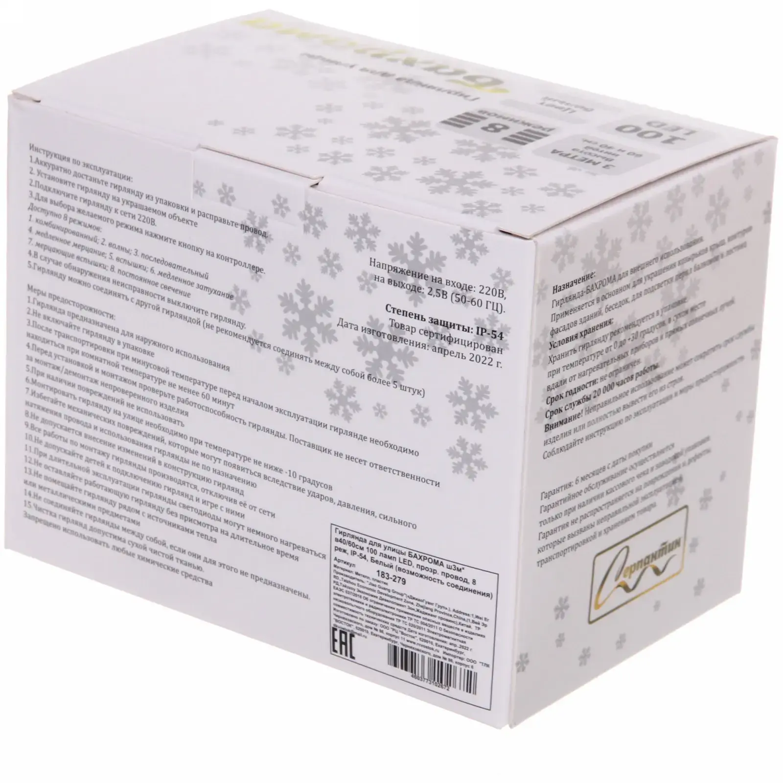 Гирлянда предназначена для использования как внутри помещений, так и на улице. Она имеет 8 различных режимов работы, что позволяет вам легко менять атмосферу в зависимости от настроения или события. Установка гирлянды проста и не требует специальных навыков — просто повесьте её в нужном месте и подключите к сети.