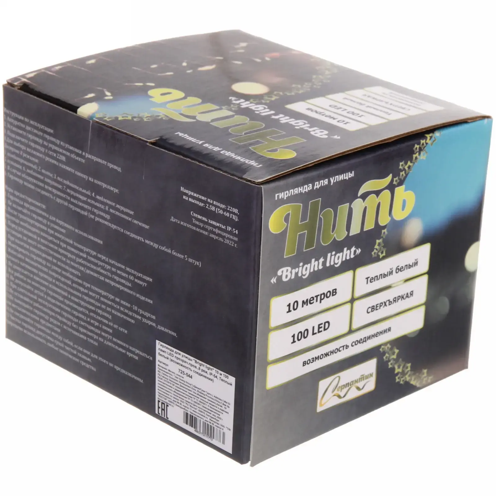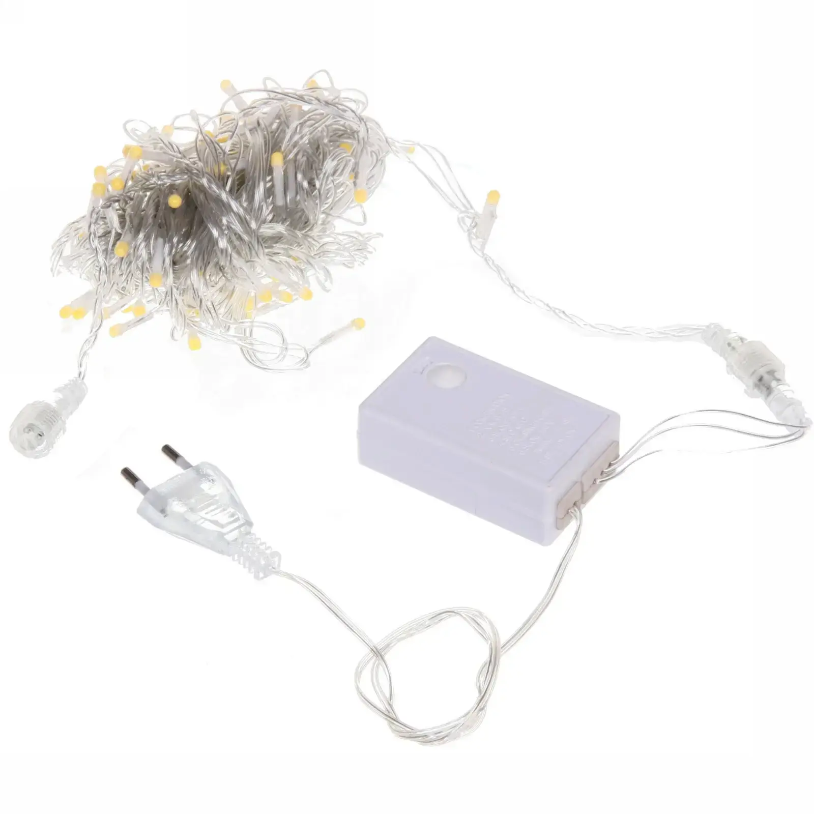 Гирлянда для улицы «Bright light» 10 м 100 ламп LED прозрач.пров.,8 реж, IP-54, Теплый белый (возможность соединения)