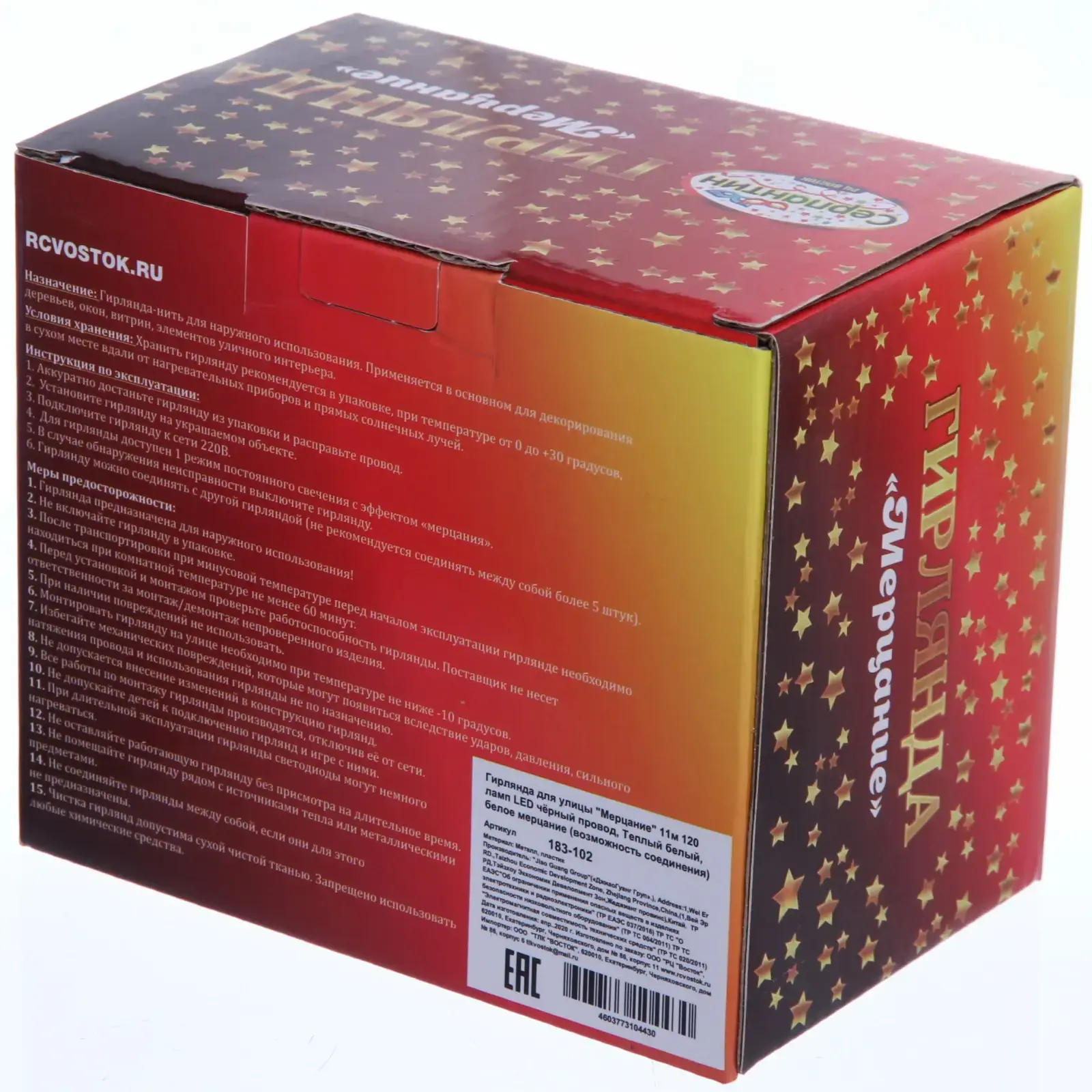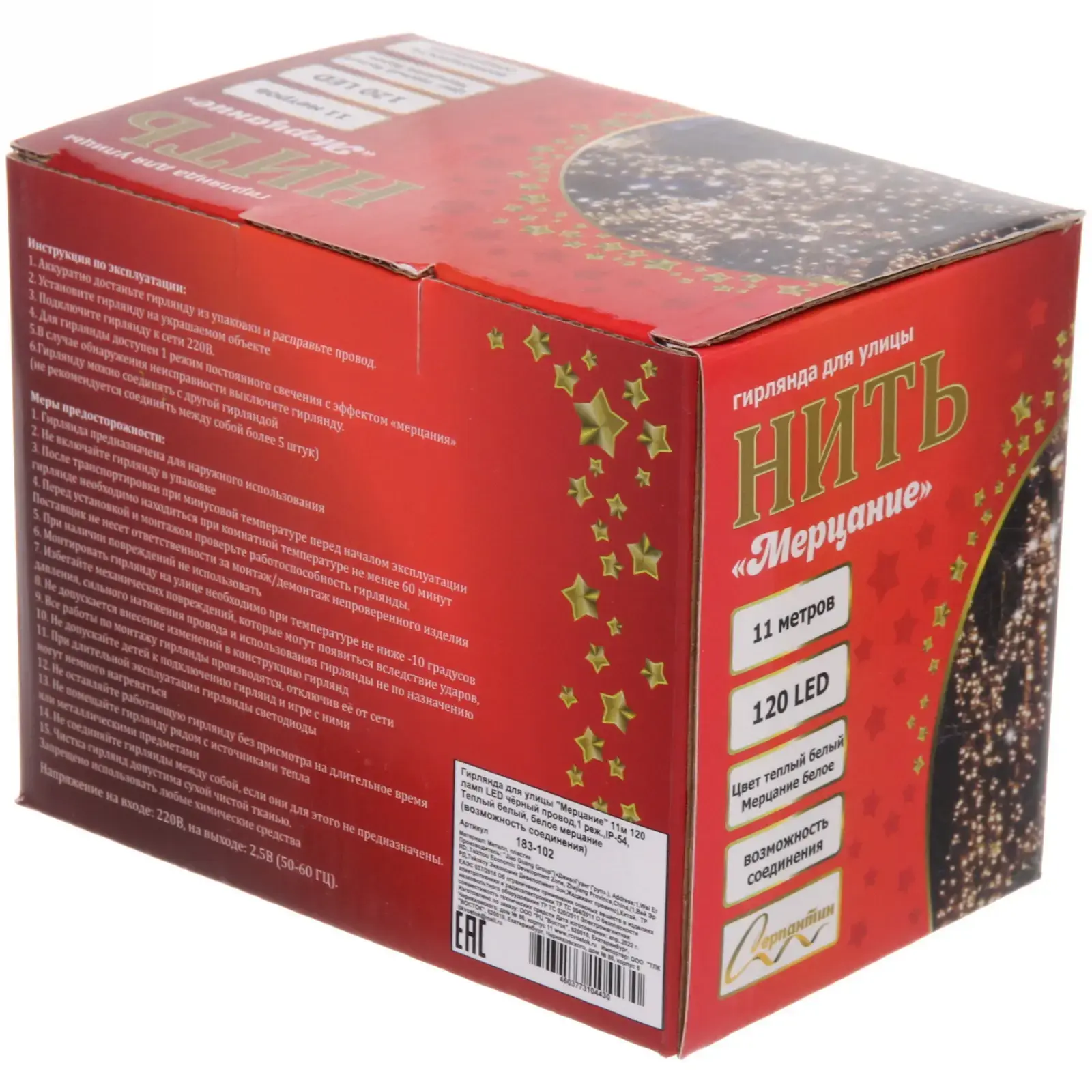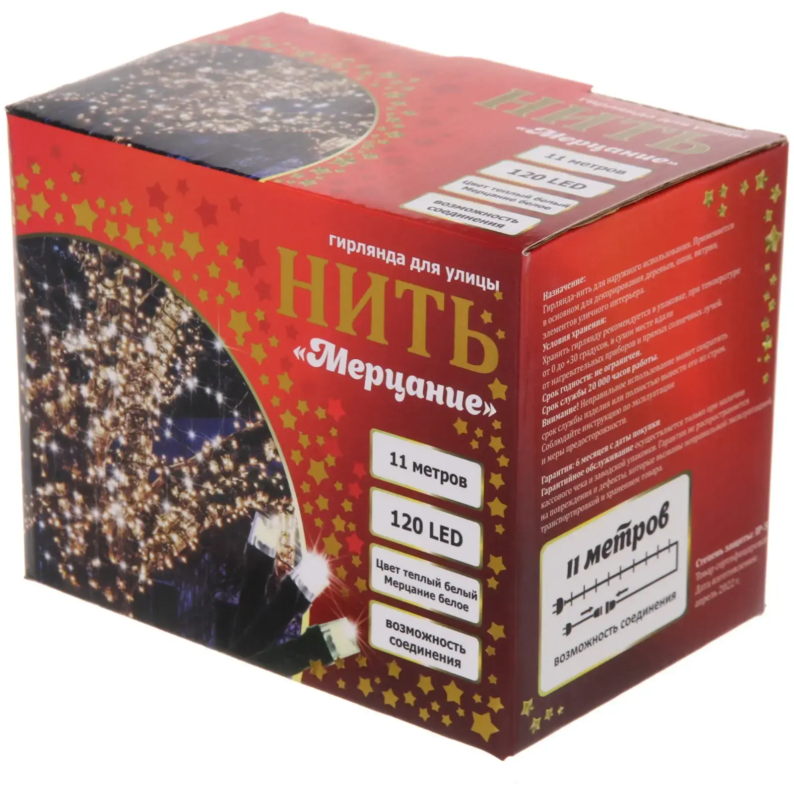 Гирлянда для улицы «Мерцание» 11м 120 ламп LED чёрный провод,1 реж.,IP-54, Теплый белый, белое мерцание (возможность соединения)