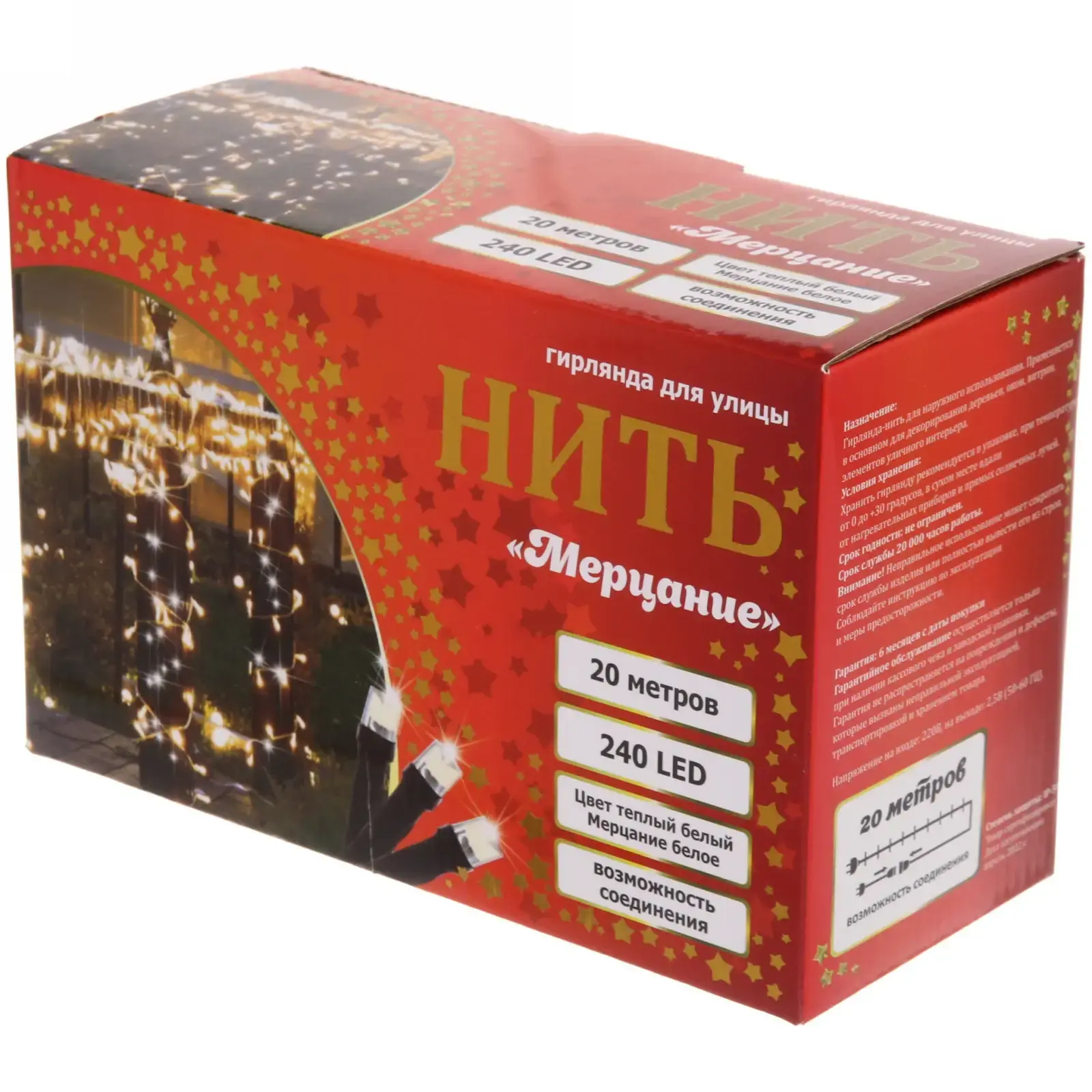 Выбирая гирлянду «Мерцание», вы получаете не только красивое освещение, но и долговечный продукт. Светодиоды имеют длительный срок службы и низкое энергопотребление, что позволяет экономить на электричестве. Кроме того, возможность соединения нескольких гирлянд между собой дает вам возможность создавать уникальные световые композиции, адаптируя освещение под ваши нужды.