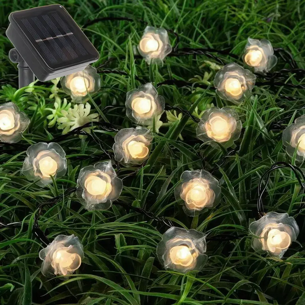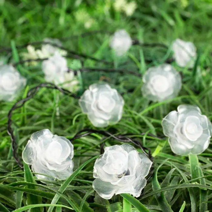 Основное преимущество гирлянды — это её автономность. Солнечная батарея заряжается в течение дня и обеспечивает 8-10 часов работы в ночное время. Степень защиты IP-55 позволяет использовать гирлянду в любую погоду, не беспокоясь о её сохранности. Нежные цветы, выполненные из качественных материалов, выглядят как живые и привлекают внимание окружающих.
