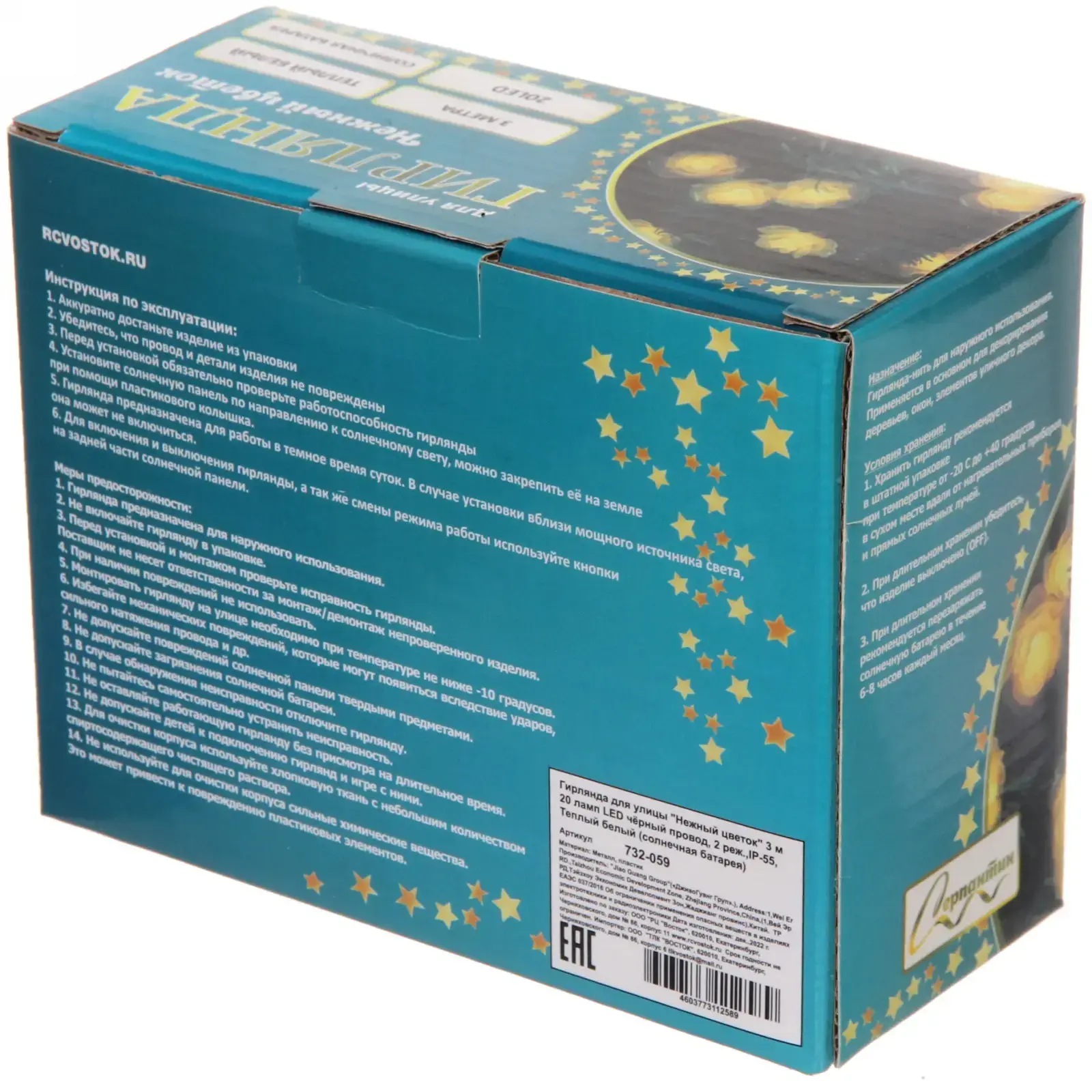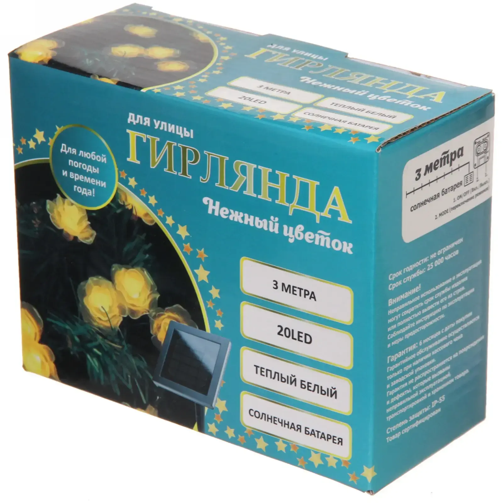Создайте уютную атмосферу на вашем участке с гирляндой «Нежный цветок». Эта гирлянда длиной 3 метра с 20 светодиодными лампами излучает тёплый белый свет, который идеально подходит для вечерних посиделок на террасе или в саду. Благодаря солнечной батарее, гирлянда не требует подключения к электросети, что делает её удобной и практичной для использования на улице.