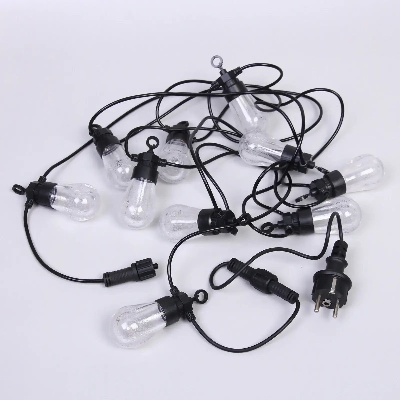 Гирлянда предназначена для использования на улице и обладает защитой IP-65, что делает её устойчивой к воздействию влаги и пыли. Это идеальный выбор для украшения на Новый год, дни рождения или другие праздники. Лампочки имеют округлую форму и оформлены с шероховатой поверхностью, что создает интересный визуальный эффект. Удобный черный провод не только стильно смотрится, но и легко вписывается в любой ландшафт.