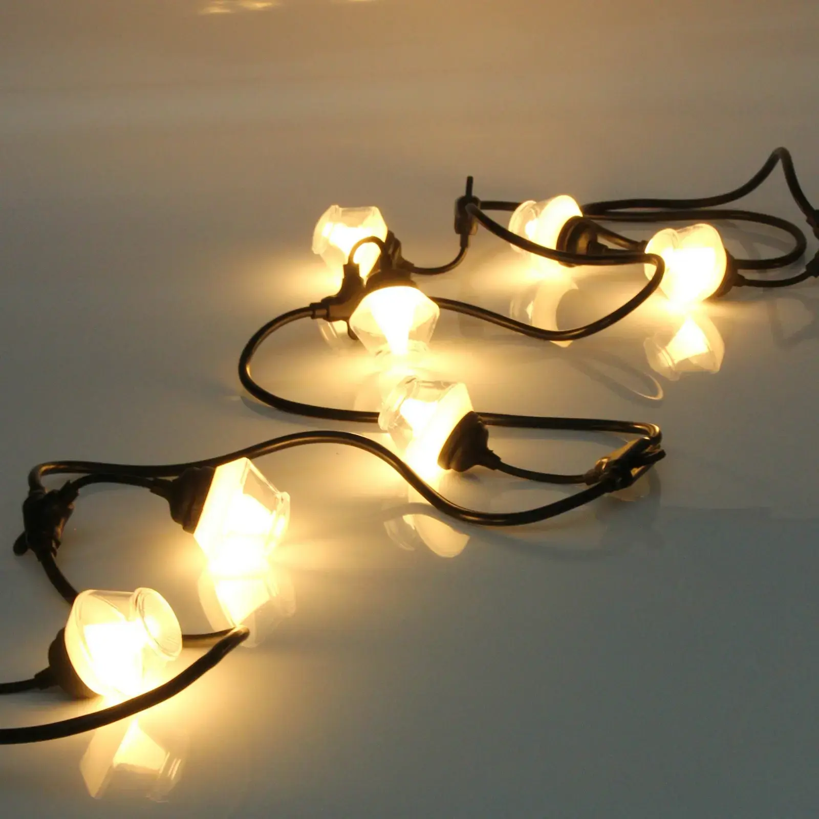 Каждый светильник имеет размер 5х6 см, что делает их компактными и легкими для размещения. Гирлянда выполнена из качественных материалов — металла и пластика, что обеспечивает долговечность и надежность. Черный провод не только эстетически привлекателен, но и обеспечивает гибкость в размещении гирлянды.