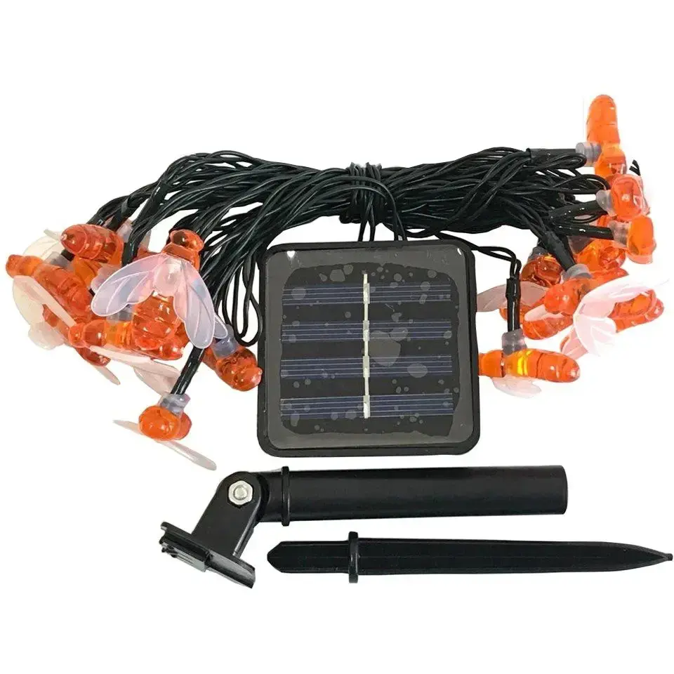 Гирлянда выполнена из качественных материалов: металл и пластик, что обеспечивает её долговечность и надежность. Размеры каждой пчелки идеально подходят для декоративного оформления, а черный провод гармонично вписывается в любой ландшафт. Не упустите возможность сделать ваш сад или террасу более уютными и красивыми с гирляндой «Пчёлка»!