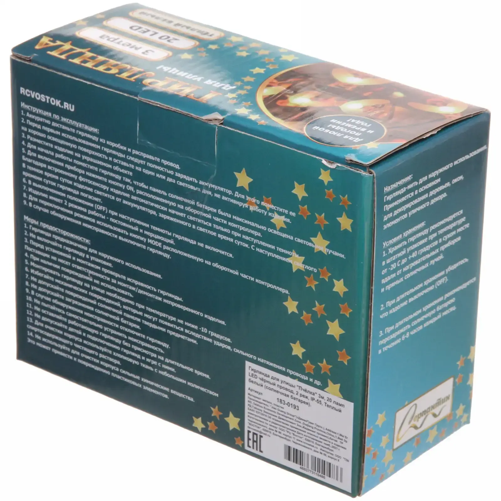 Гирлянда обладает степенью защиты IP-55, что позволяет использовать её в любых погодных условиях. Она устойчива к дождю и снегу, что делает её идеальным выбором для наружного использования. Кроме того, её яркий и привлекательный дизайн в виде пчёл будет радовать вас и ваших гостей, создавая праздничное настроение на любом мероприятии.