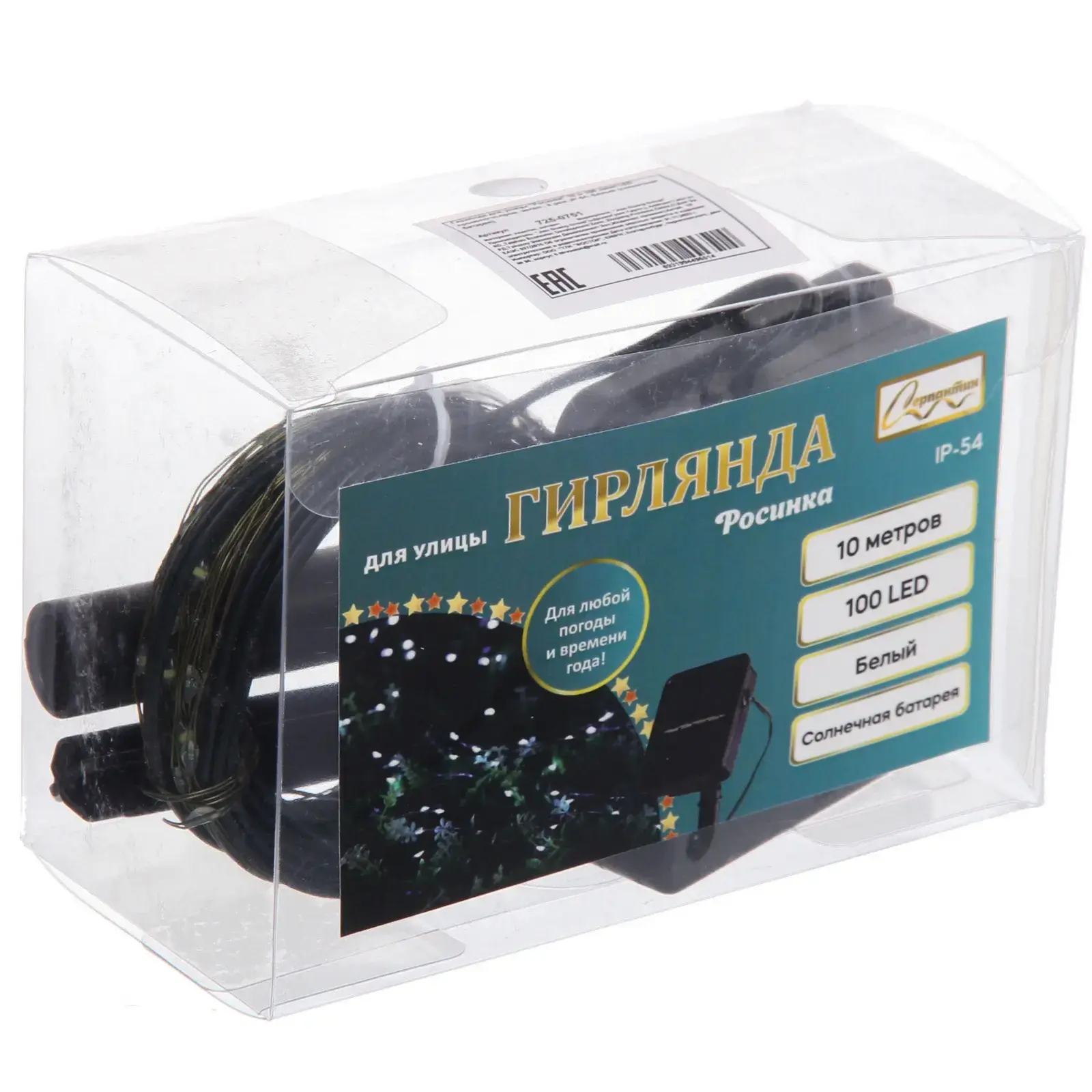 Создайте атмосферу уюта и волшебства с гирляндой для улицы «Росинка». Эта гирлянда длиной 10 метров с 100 яркими LED лампами обеспечит вам надежное освещение и красивый декор в любое время года. Благодаря солнечной батарее, вы сможете наслаждаться ее светом без лишних затрат на электроэнергию. Гирлянда имеет защиту IP-54, что делает ее устойчивой к дождю и другим неблагоприятным погодным условиям.
