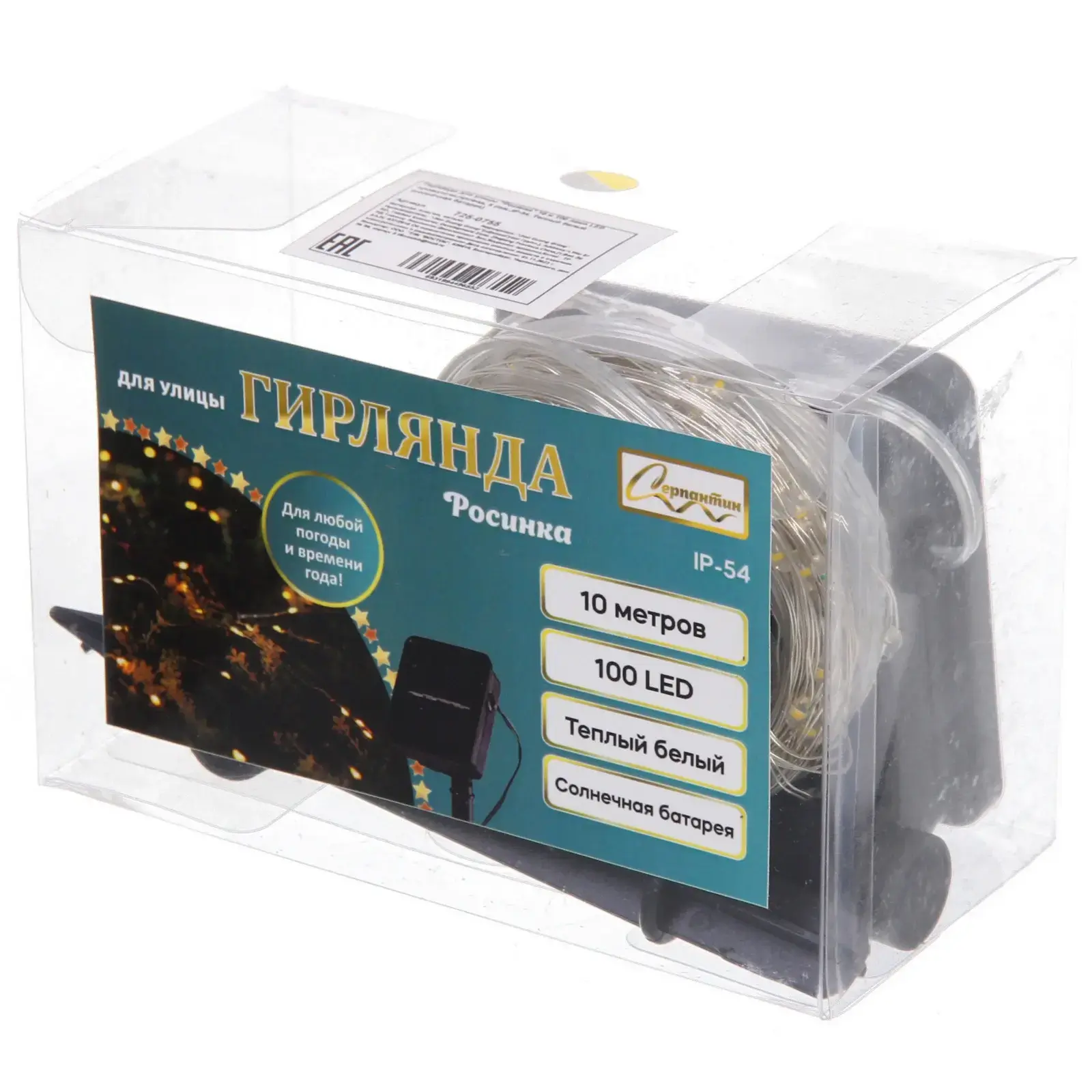 Гирлянда выполнена из качественных материалов: металл и пластик, что обеспечивает её долговечность. Длина гирлянды составляет 10 метров, а количество светодиодов — 100, что позволяет равномерно освещать большие площади. Защита от влаги и пыли (IP-54) гарантирует, что гирлянда прослужит вам долго, даже в сложных погодных условиях.