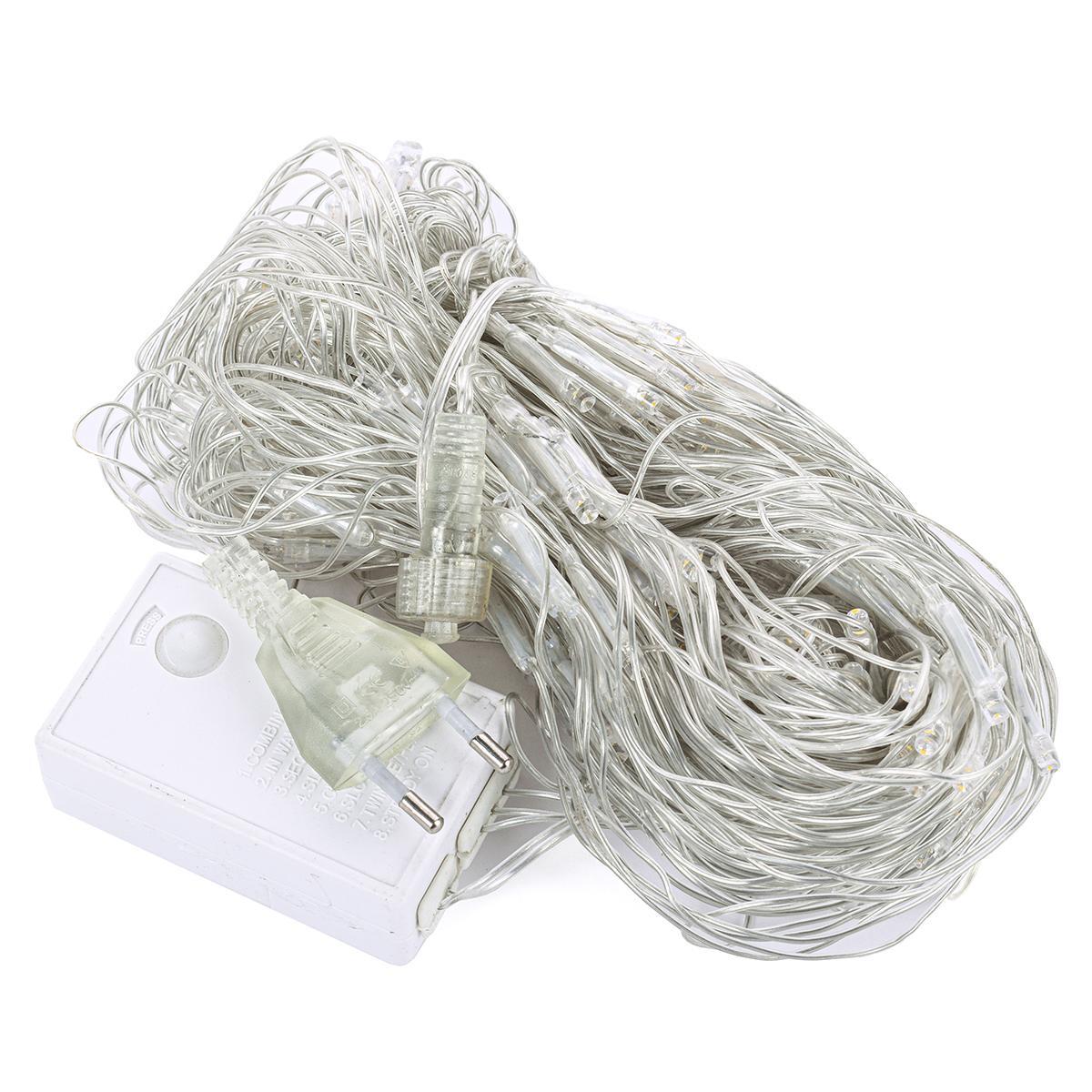 Гирлянда подключается к стандартной сетевой розетке и имеет 8 режимов свечения, что позволяет менять настроение пространства без дополнительных приборов. Свет распределён по сетке равномерно, обеспечивая ровное освещение периметра дома, беседки или садовых дорожек. При необходимости гирлянду можно легко присоединить к другой гирлянде той же модели.