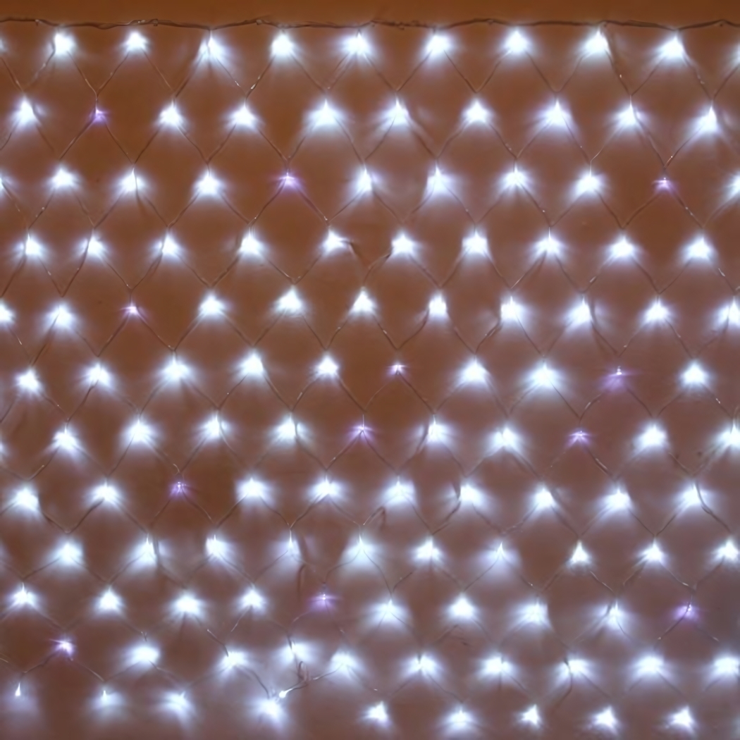 Размер гирлянды составляет 2 метра, а светильники равномерно распределены по всей сетке. Благодаря использованию качественного металла и пластика, изделия устойчивы к различным климатическим условиям. А белый цвет светильников создает чистый и стильный интерьер, подходящий для любого праздника или мероприятия.