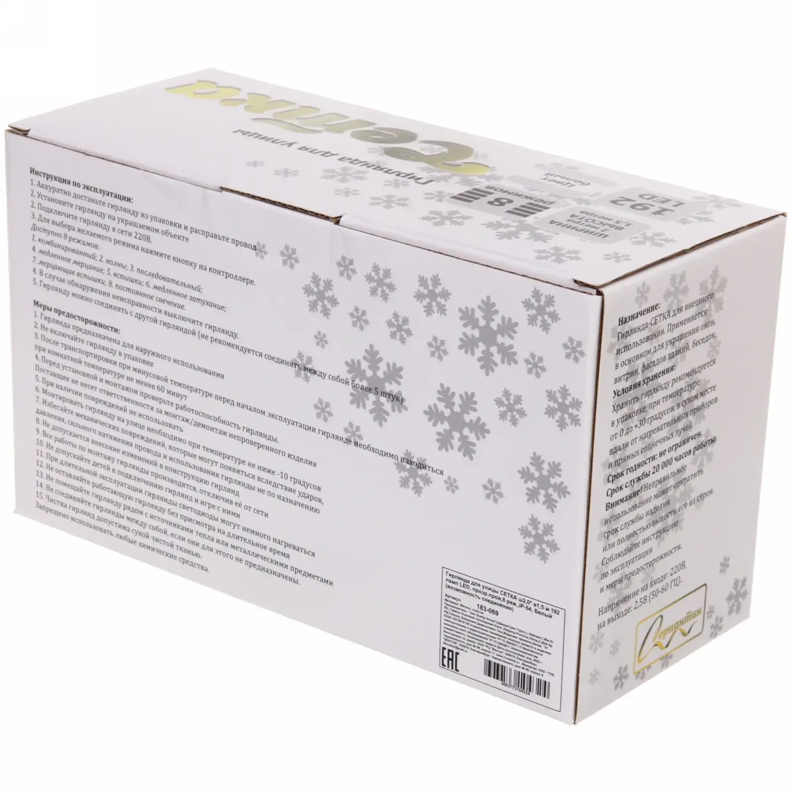 Гирлянда предназначена для уличного использования и имеет степень защиты IP-54, что обеспечивает её надежность даже в условиях дождя и снега. Она легко подключается к электросети и может быть использована для украшения домов, веранд, садов и других объектов. Благодаря возможности соединения нескольких гирлянд, вы можете создать масштабные световые композиции, которые будут радовать глаз.