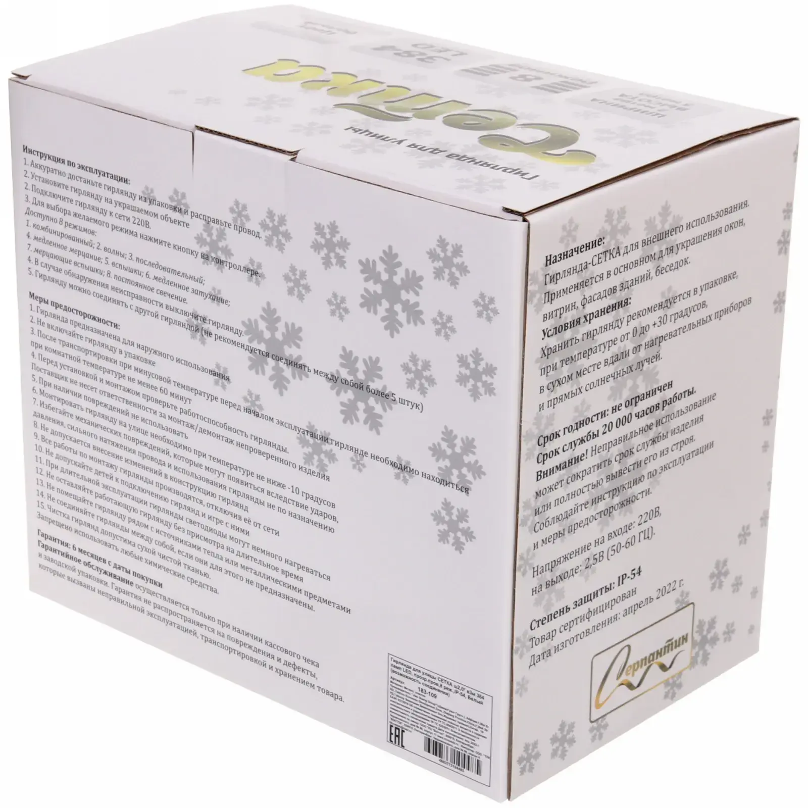 Гирлянда выполнена из качественных материалов, таких как металл и пластик, что гарантирует её долговечность и надёжность. Установка гирлянды проста и не требует специальных навыков — достаточно подключить её к электросети и выбрать желаемый режим работы. Не упустите возможность сделать ваш праздник незабываемым с гирляндой СЕТКА!