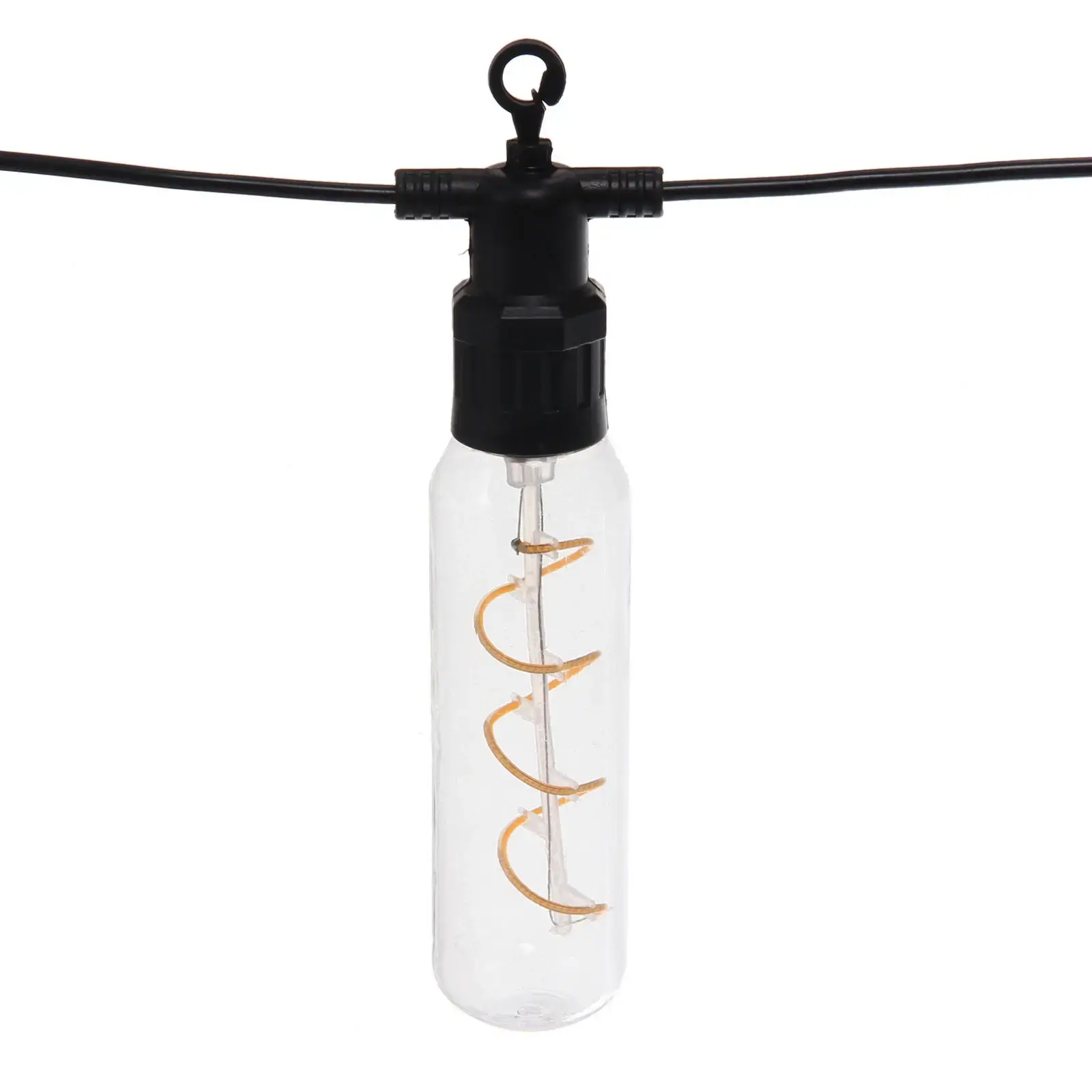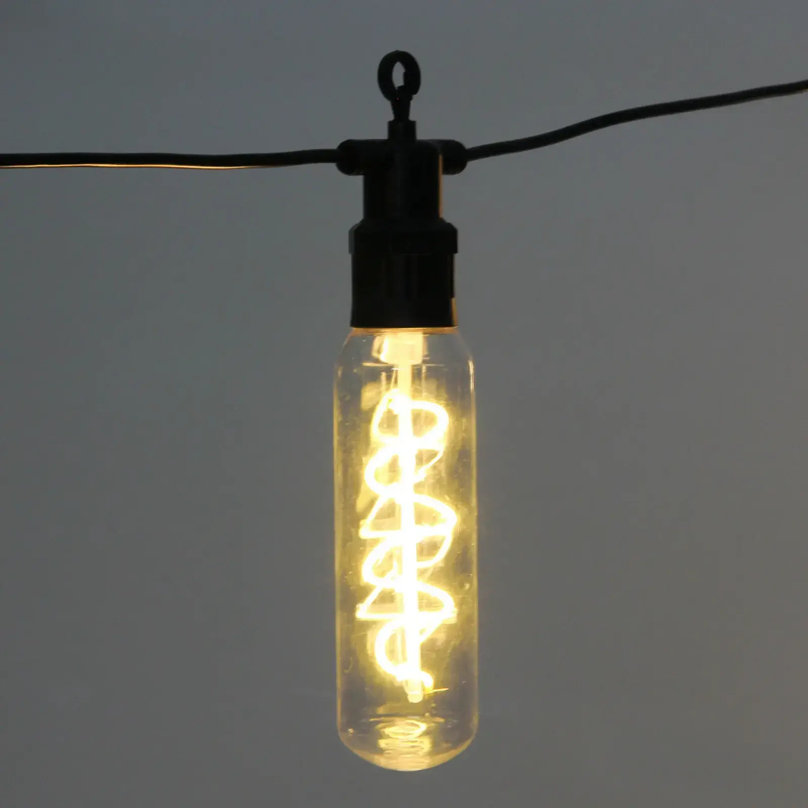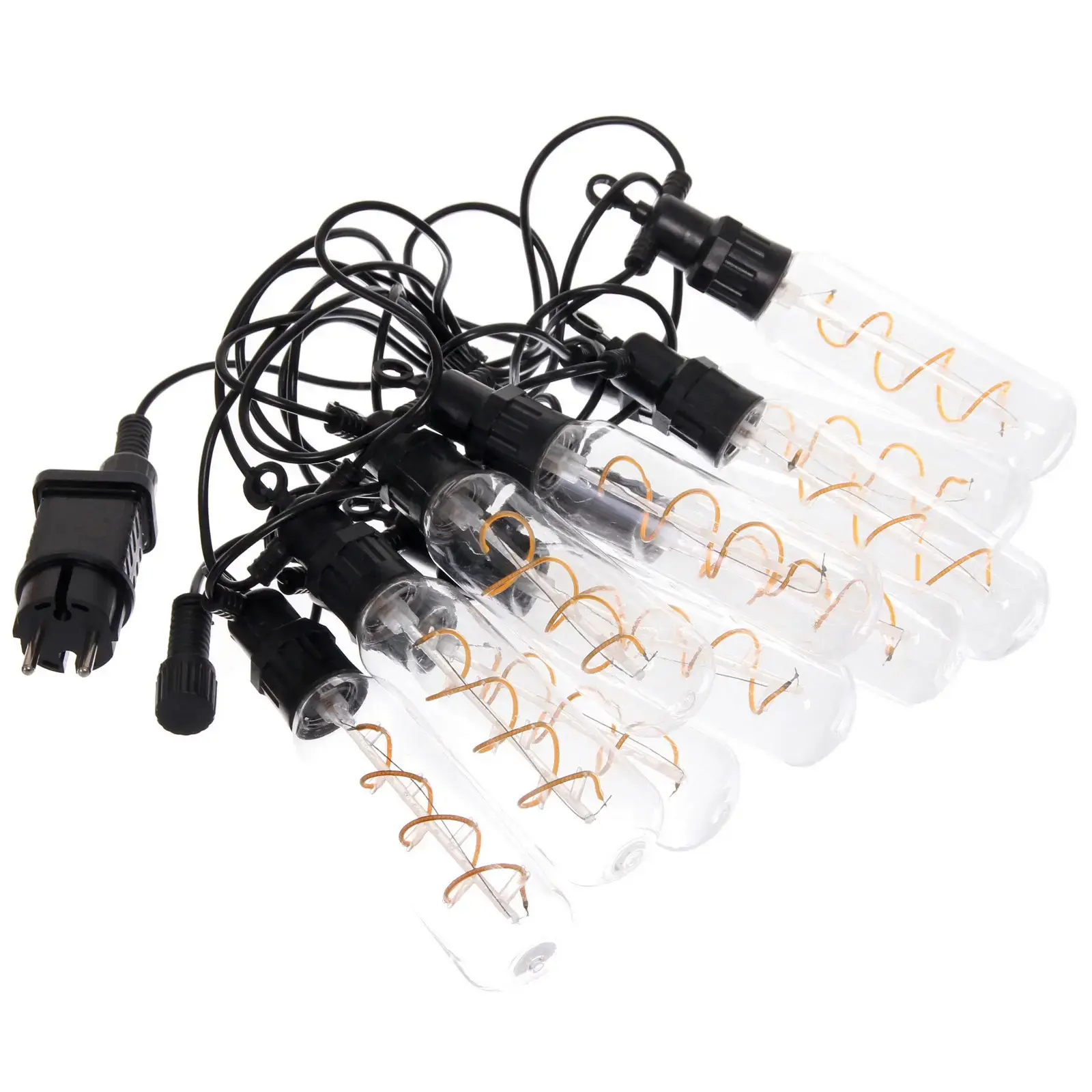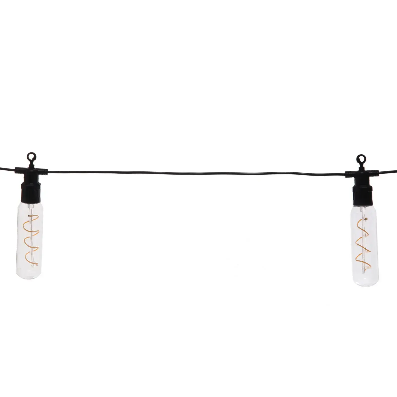 Гирлянда состоит из 10 ламп, каждая из которых имеет размеры 13х4 см. Черный провод обеспечивает контраст с прозрачными лампами, создавая эффектный визуальный стиль. Подключение осуществляется к стандартной сети 220 V, что делает установку простой и удобной. Не упустите возможность преобразить ваше пространство с помощью этой стильной гирлянды!