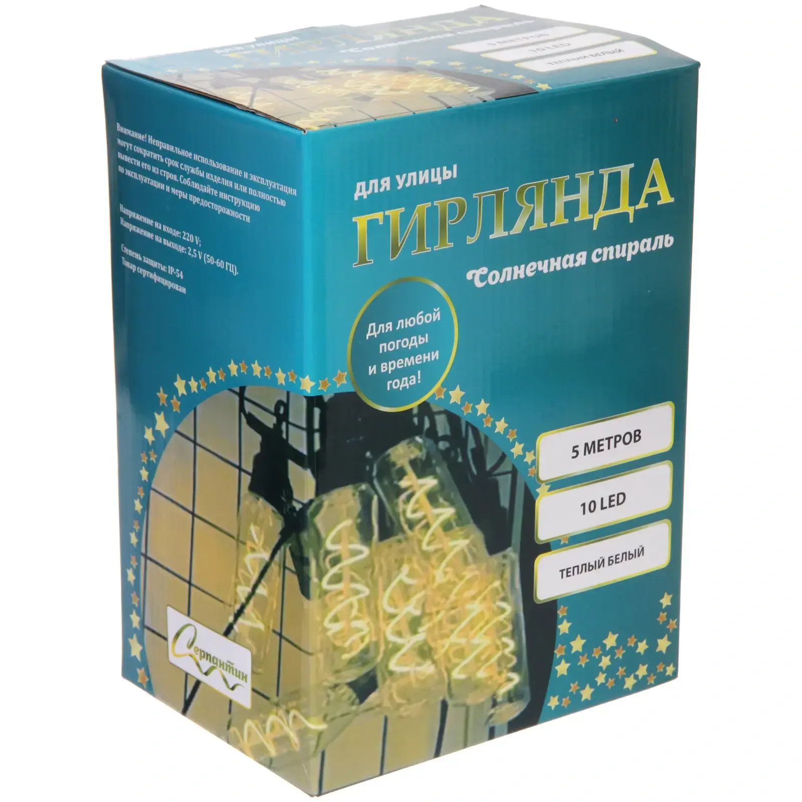 Создайте уютную атмосферу на вашем участке с гирляндой «Солнечная спираль». Эта гирлянда длиной 5 метров с 10 светодиодными лампами излучает теплый белый свет, который идеально подходит для вечерних посиделок на свежем воздухе. Благодаря своему стильному дизайну и качественным материалам, она станет отличным дополнением к вашему саду или даче.