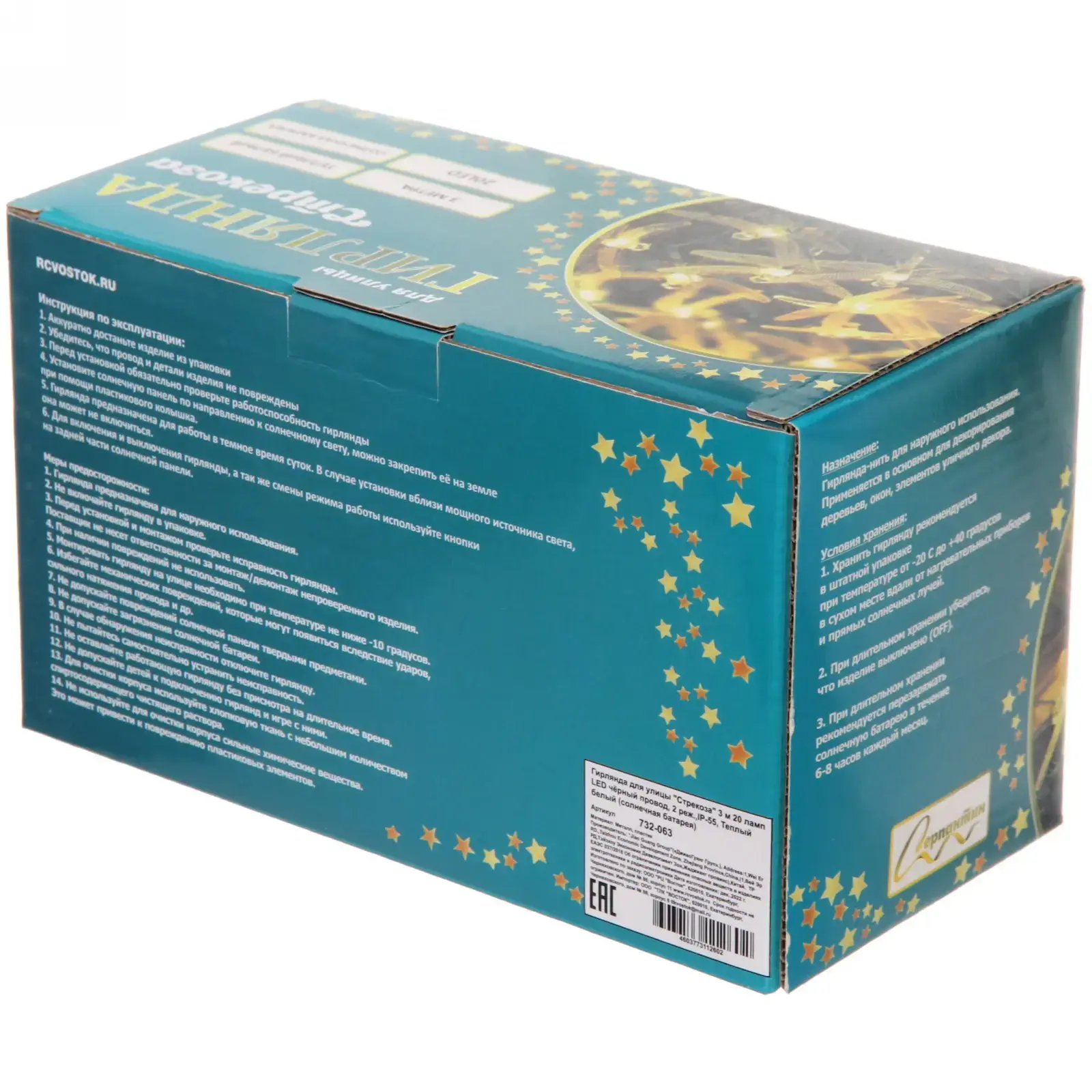 Гирлянда работает от солнечной батареи, что делает её удобной в использовании — не нужно подключать к электросети. Она имеет два режима работы: постоянное свечение и мерцание, что позволяет вам выбрать подходящий режим для любого мероприятия. Установка гирлянды проста и не требует специальных навыков — просто разместите её в нужном месте и наслаждайтесь.